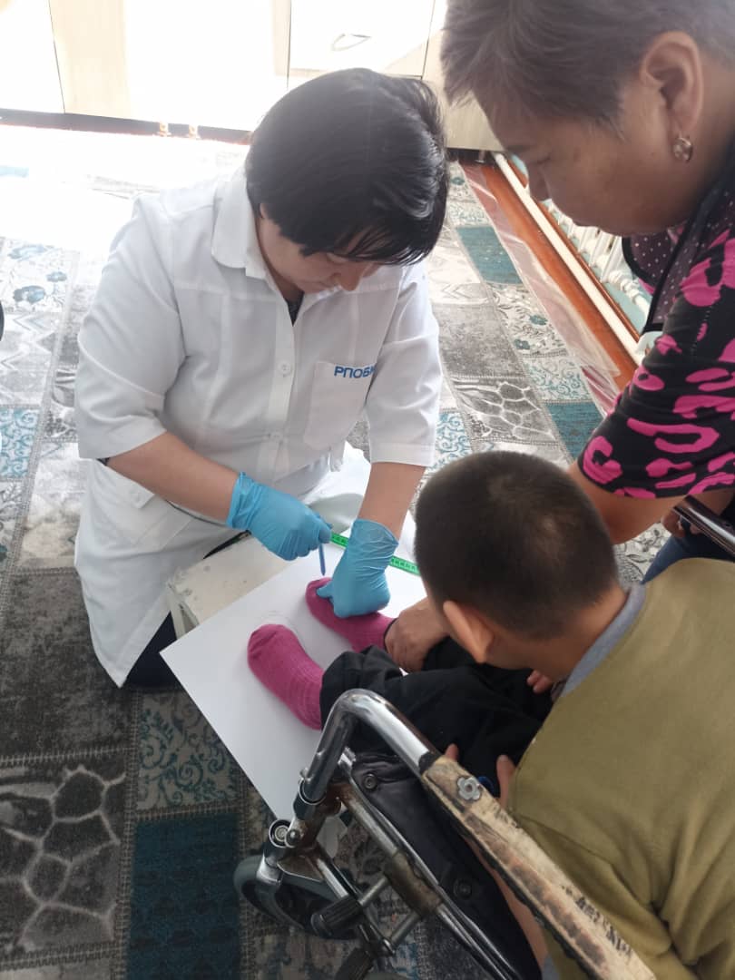 18 февраля выездная бригада медтехников Республиканского учреждения протезно-ортопедических изделий при Минсоцтруда провела осмотр детей в Беловодском детском психоневрологическом социальном стационарном учреждении и Сокулукском реабилитационном центре для лиц с ОВЗ. Специалисты сняли индивидуальные антропометрические мерки и оценили состояние здоровья воспитанников.