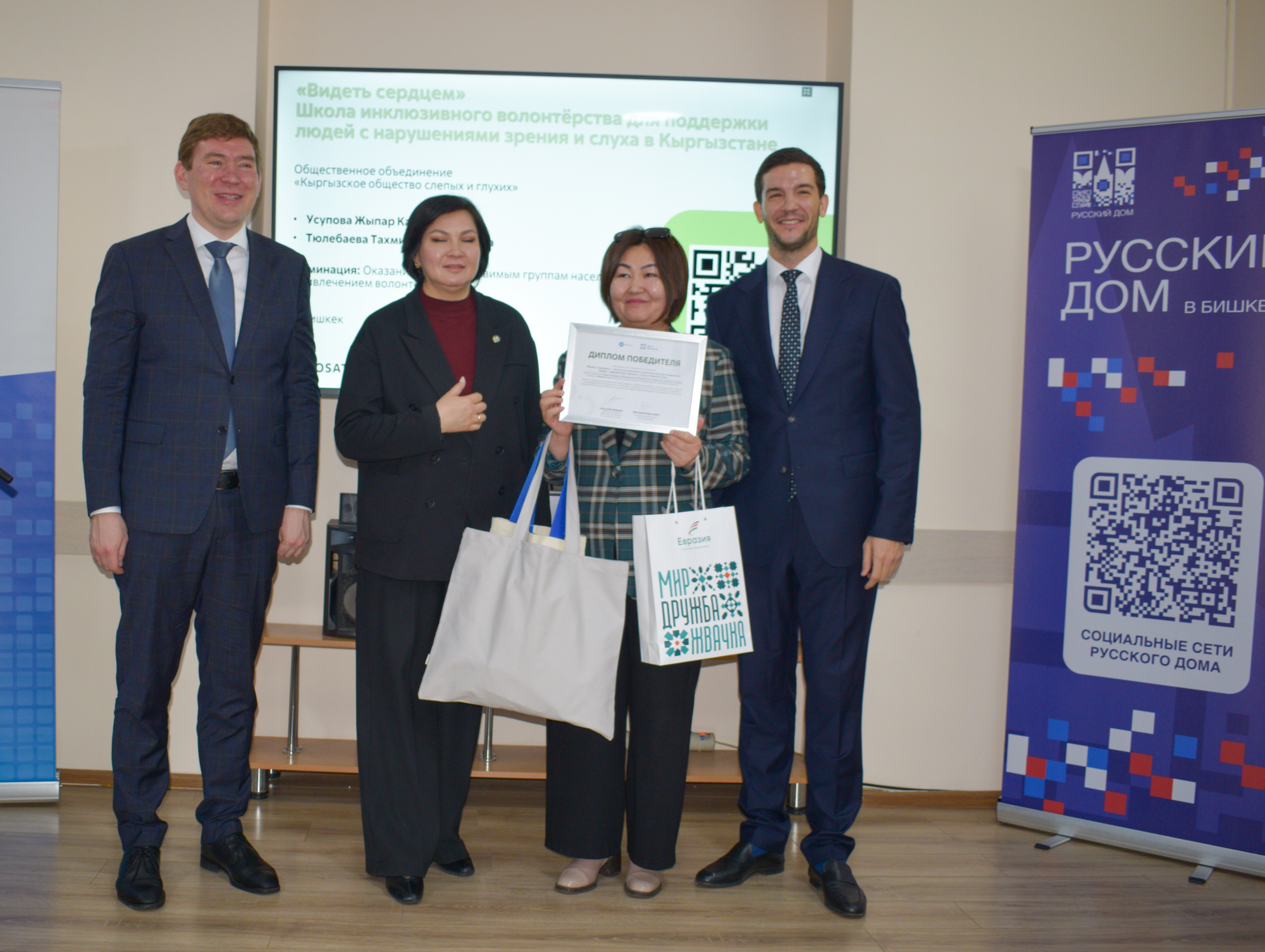 Четвертым победителем стала школа инклюзивного волонтёрства «Видеть сердцем» Кыргызского общества слепых и глухих из города Бишкек. Под руководством Жыпар Усуповой и Тахмины Тюлебаевой проект направлен на поддержку людей с нарушениями зрения и слуха. Инициатива предусматривает обучение волонтеров основам жестового языка и азбуки Брайля, а также проведение совместных инклюзивных мероприятий.