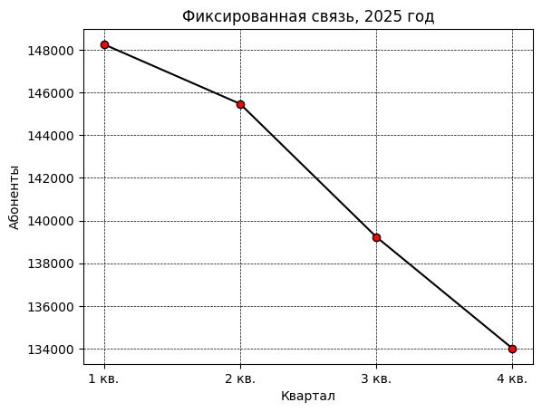 Фиксированная связь продолжила снижение: с 148.2 тысячи абонентов в первом квартале до 134 тысяч к концу года.
