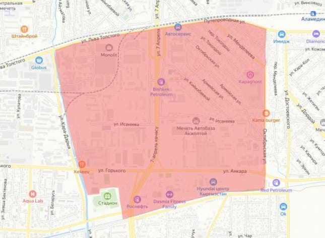 Под ограничение попадет территория в границах улицы Октябрьской, ВБЧК, реки Аламедин и улицы Путепроводной.