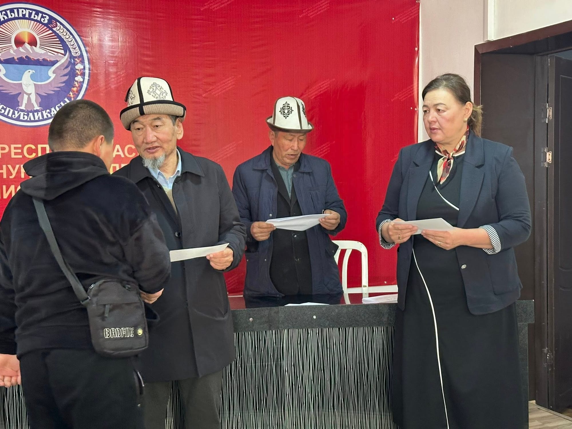 В мероприятии приняли участие заместитель полномочного представителя президента в Баткенской области Жаныбек Исаков и руководитель фонда «Баткен-Ыйман-Нуру» Апызаалы Кочкоров.