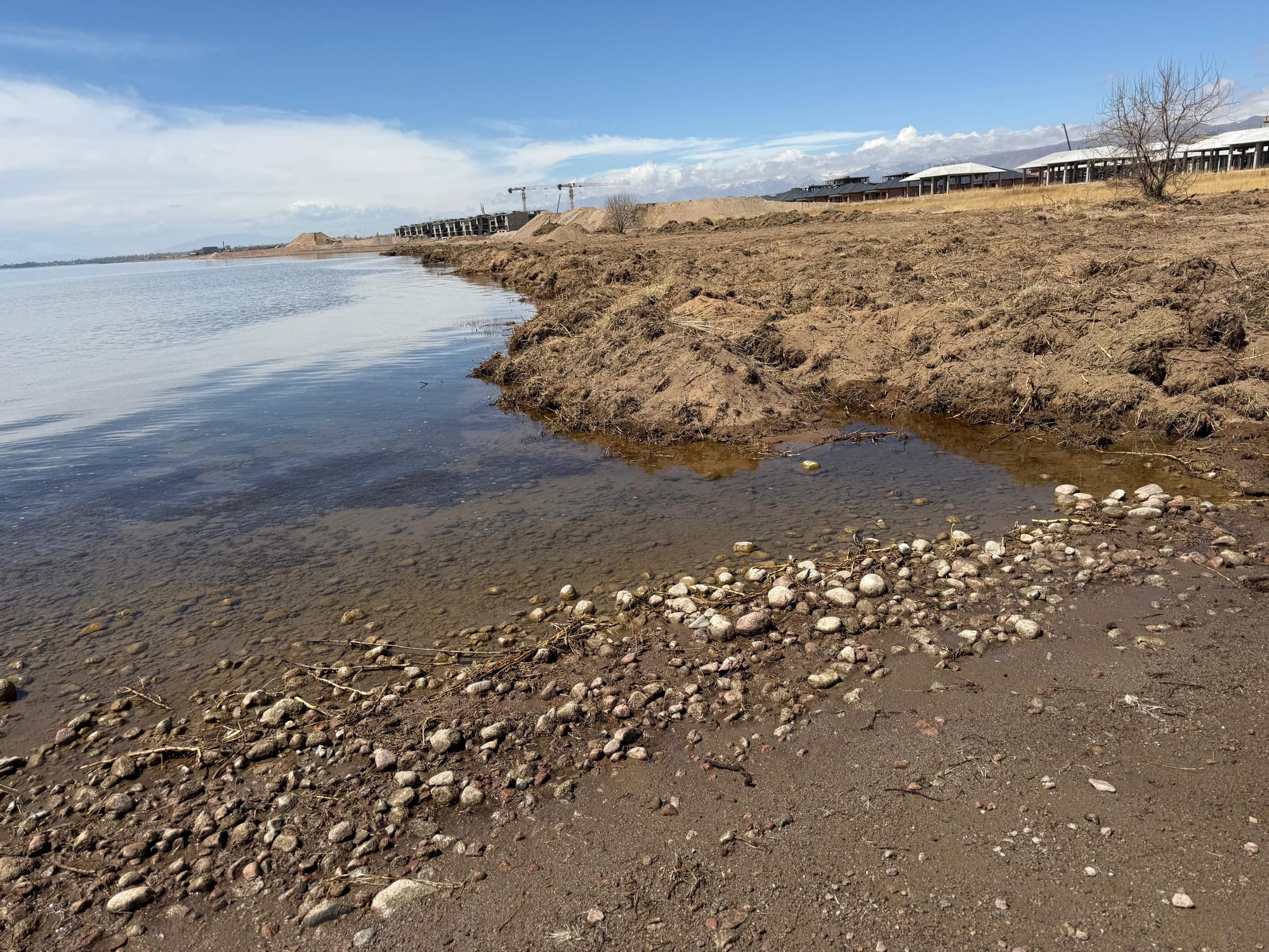 Министерство начало внеплановые проверки строительных компаний в селе Тамчы после публикации видеоматериалов о возможном сбросе песка и грунта в акваторию Иссык-Куля. Основанием стали обращения, поступившие 22 апреля 2026 года, после чего с 23 апреля стартовали контрольные мероприятия. Инспекторы провели замеры для оценки масштабов воздействия и запросили разрешительную документацию, однако на момент проверки компании ее не представили.