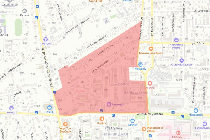 Район отключения ограничен улицами Ахунбаева, Ташаузская, Тыналиева и Садырбаева.