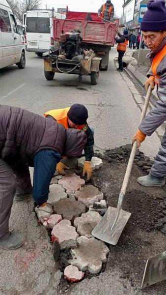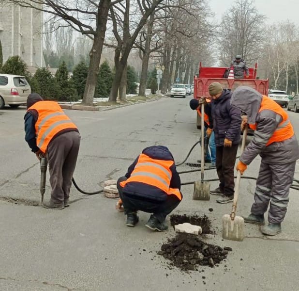 «В связи с тем, что в столице сохраняется холодная погода, невозможно начать укладку горячего асфальта на ямах. При наступлении устойчивых погодных условий сотрудники [Бишкекасфальтсервиса] предприятия приступят к ямочному ремонту на улицах города. Кроме того, планируется полностью заасфальтировать некоторые улицы», – сообщили в мэрии.