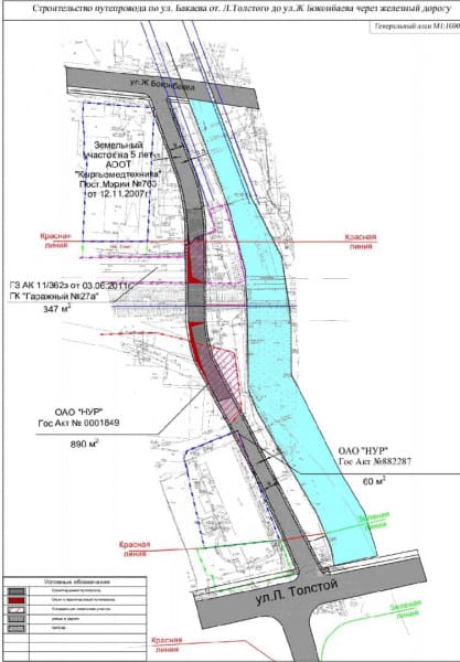 Дополнительно планируется соединить улицы Кара-Дарыя и Суюмбаева через железную дорогу, а также начать строительство моста через улицу Шукурова с выводом на улицу Медерова. Проект предусматривает ширину моста в 15 метров, включая тротуары.
