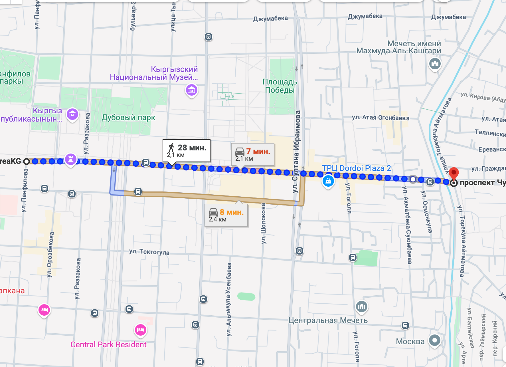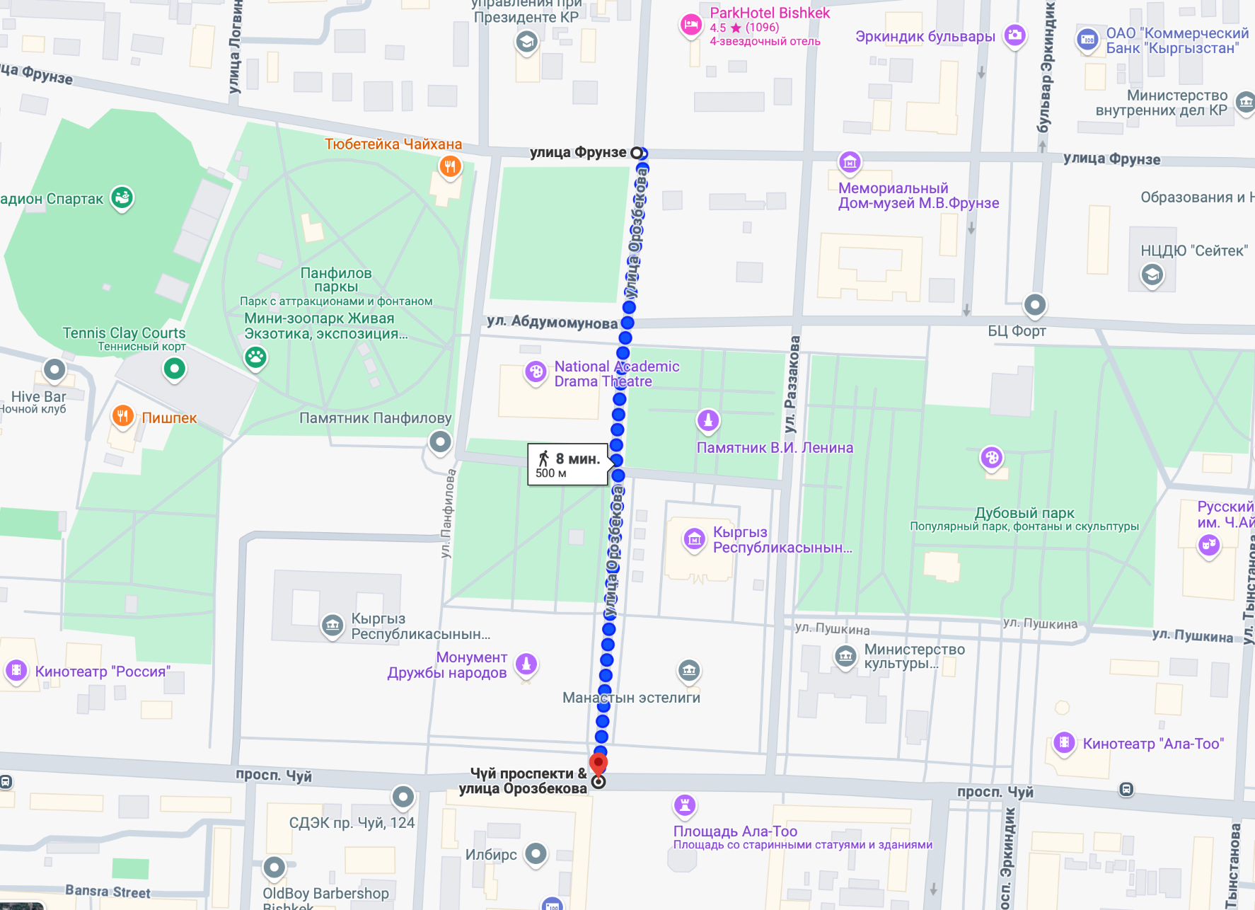 - часть проспекта Чуй — от улицы Панфилова до бульвара Эркиндик;