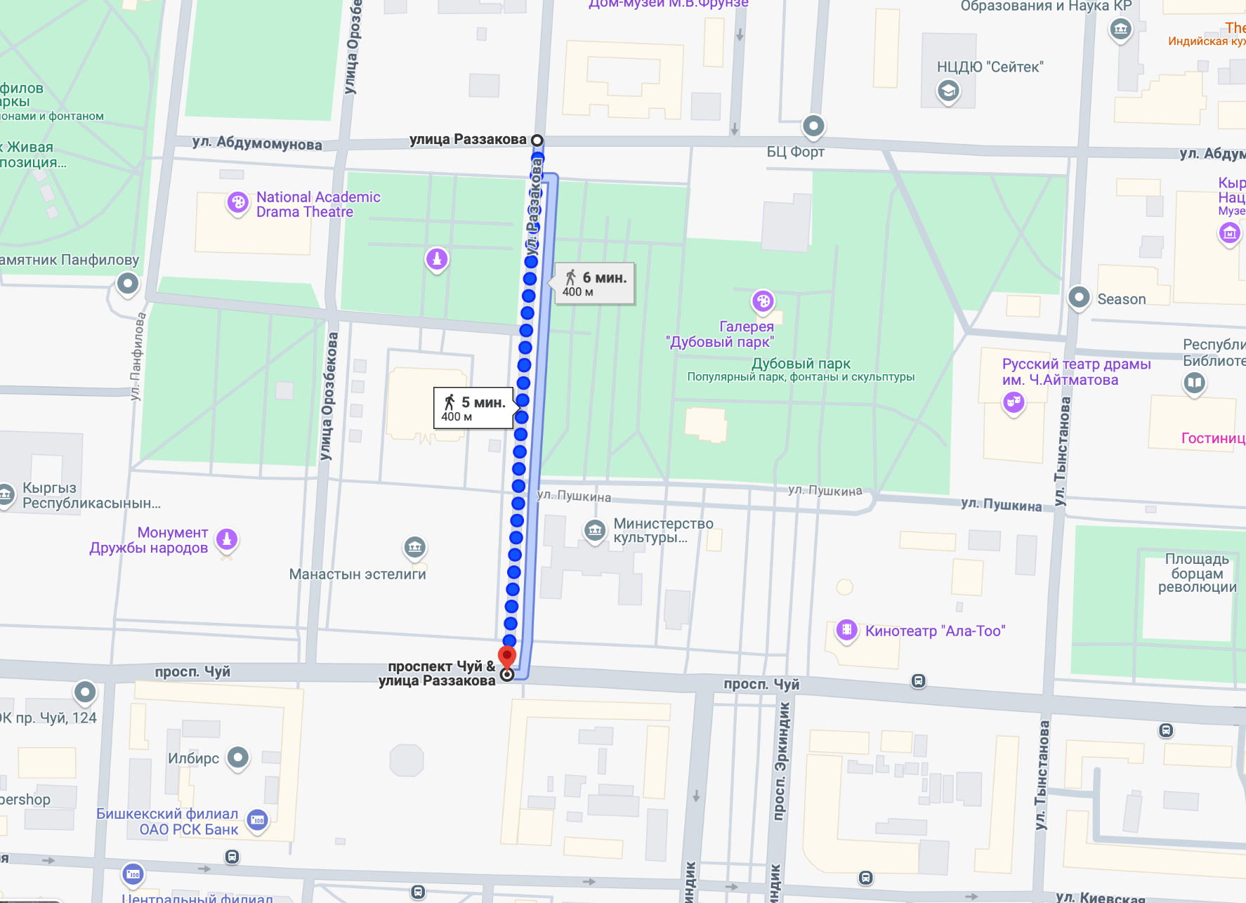 - улица Раззакова — от улицы Абдымомунова до проспекта Чуй;