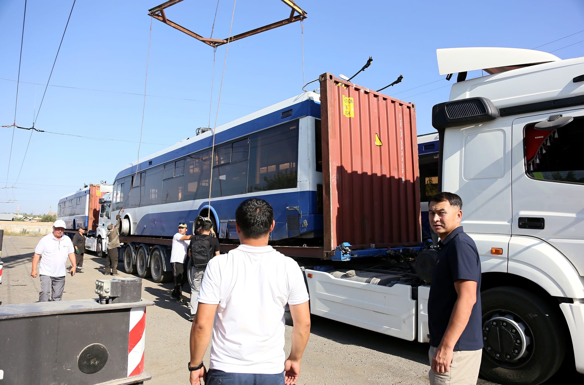 Первые шесть троллейбусов из Бишкека прибыли в Ош – их пустят на новую линию