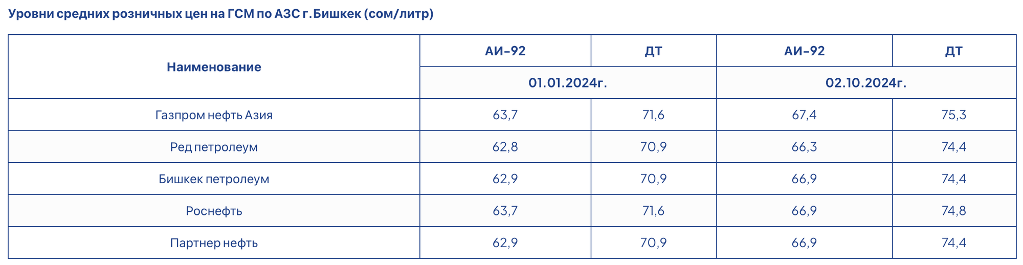 Ниже предоставлены средние розничные цены на топливо в Бишкеке за 1 и 2 октября.