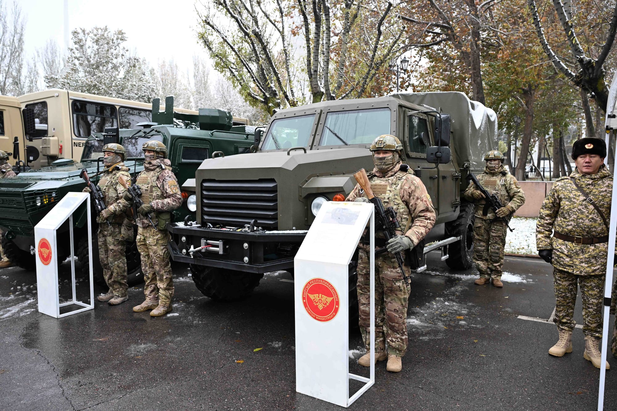 Сегодня, 14 ноября, перед зданием Кыргызского национального академического драмтеатра имени Т. Абдымомунова прошла выставка специальной техники, приобретенной за счет государственного бюджета.