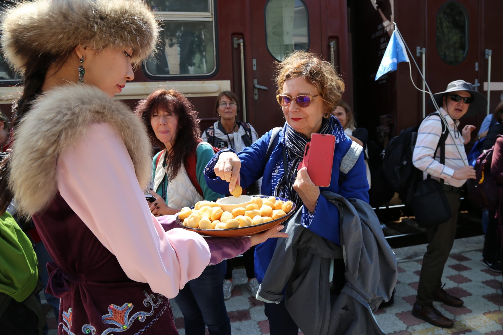 Гости прибыли из Европы в рамках железнодорожного маршрута, который проходит через Узбекистан, Кыргызстан и Казахстан.
