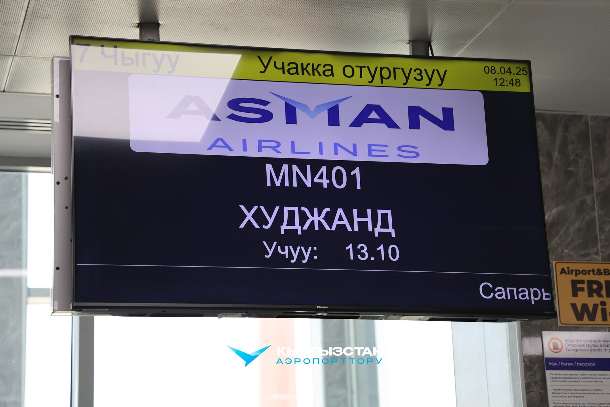 Государственная авиакомпания Asman Airlines 8 апреля запустила первый прямой коммерческий рейс по маршруту Бишкек — Худжанд. Об этом сообщил председатель ОАО «Аэропорты Кыргызстана» Манасбек Самидинов.