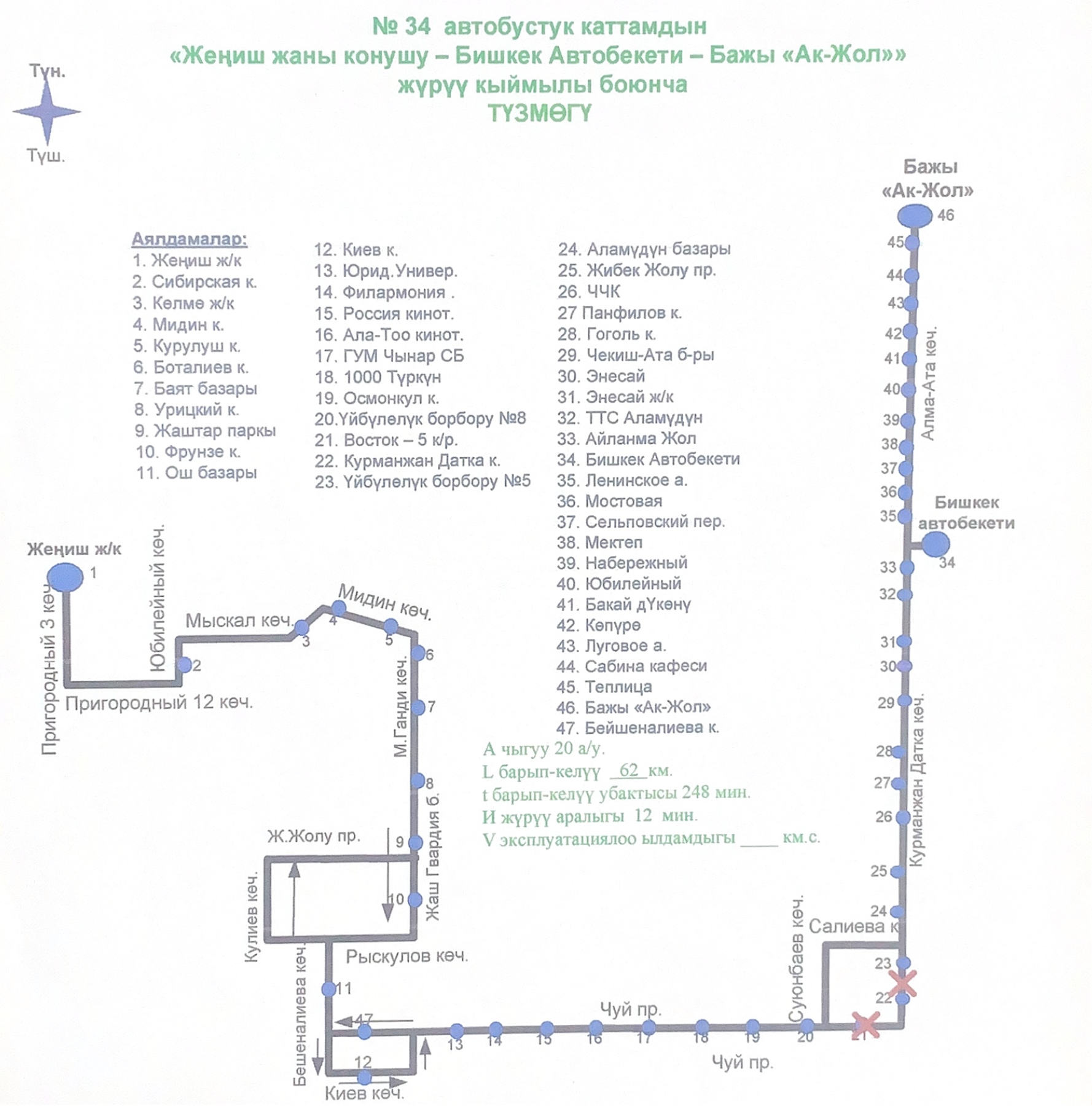 Мэрия Бишкека сообщила об изменении схемы движения автобусного маршрута №34. Решение принято для улучшения транспортной доступности и оптимизации потока на загруженных участках.