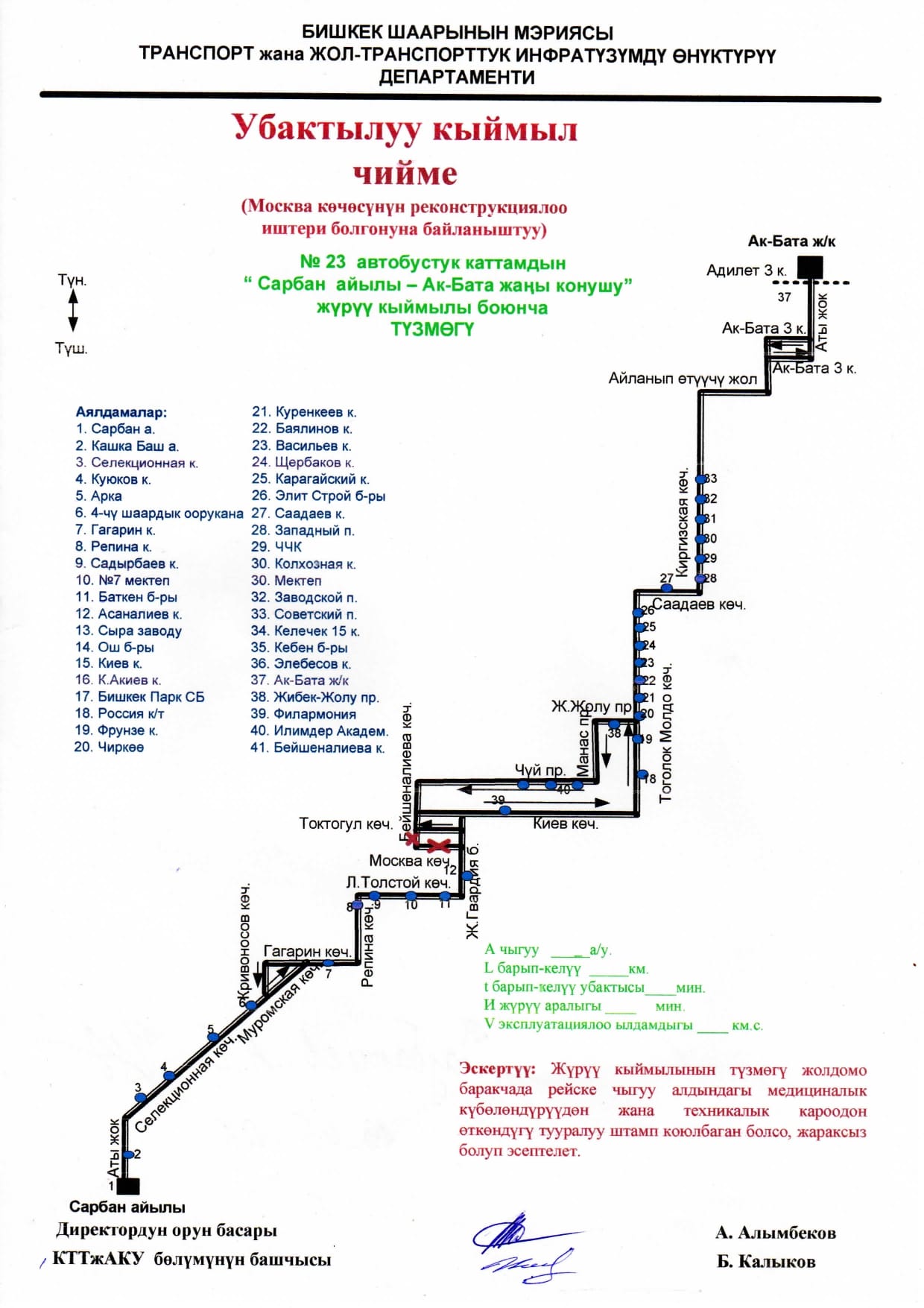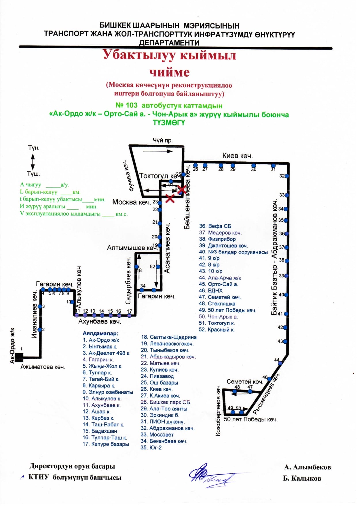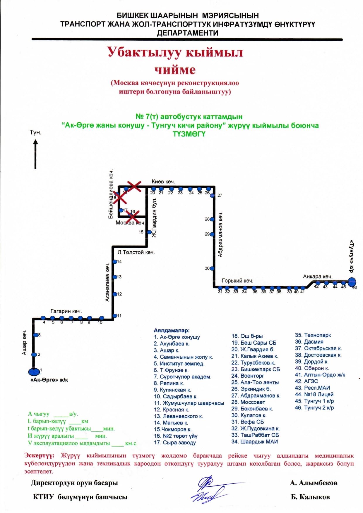 - улица Московская — от улицы Асаналиева до улицы Фучика.