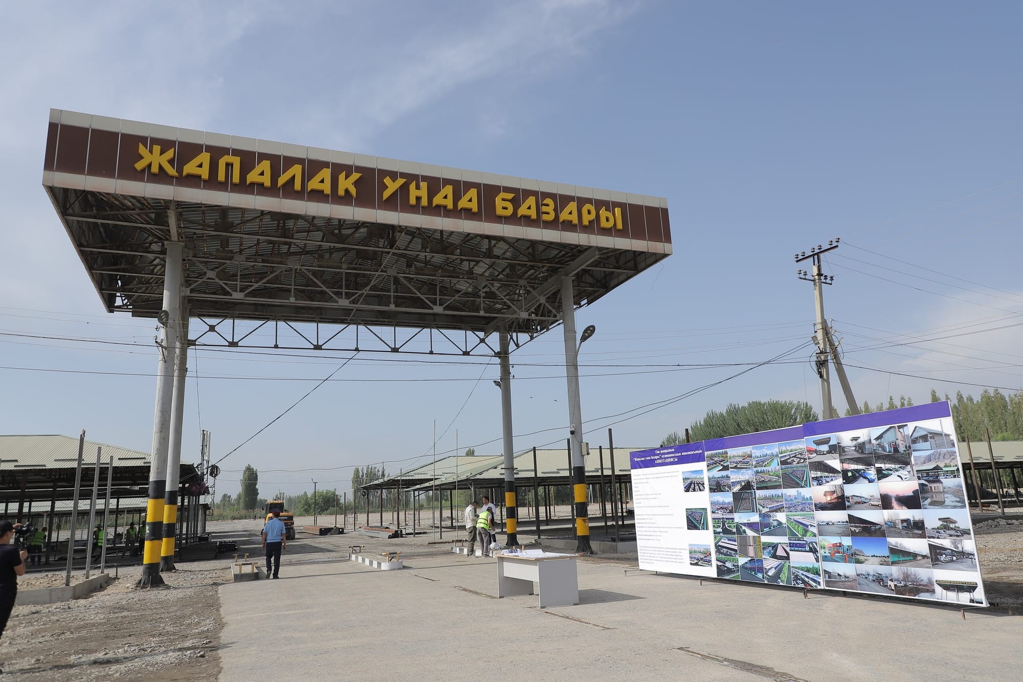 Так, глава кабмина осмотрел подготовку к асфальтированию территории, установку системы освещения, а также строительство дополнительных подъездных дорог к рынку. В настоящее время залит фундамент административного здания, установлены ограждения, произведены посадки деревьев и посев газона, уложены канализационные трубы и установлены электросети.