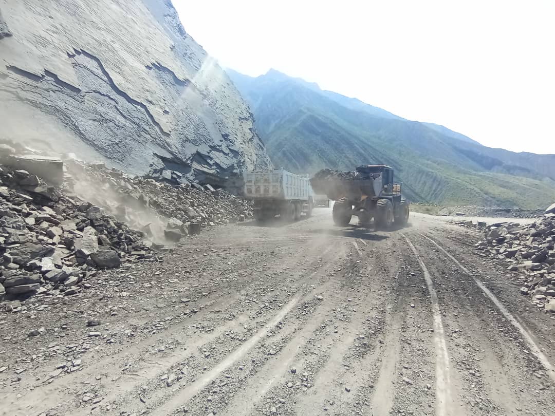 На дороге Арал–Казарман продолжают ликвидировать последствия камнепада