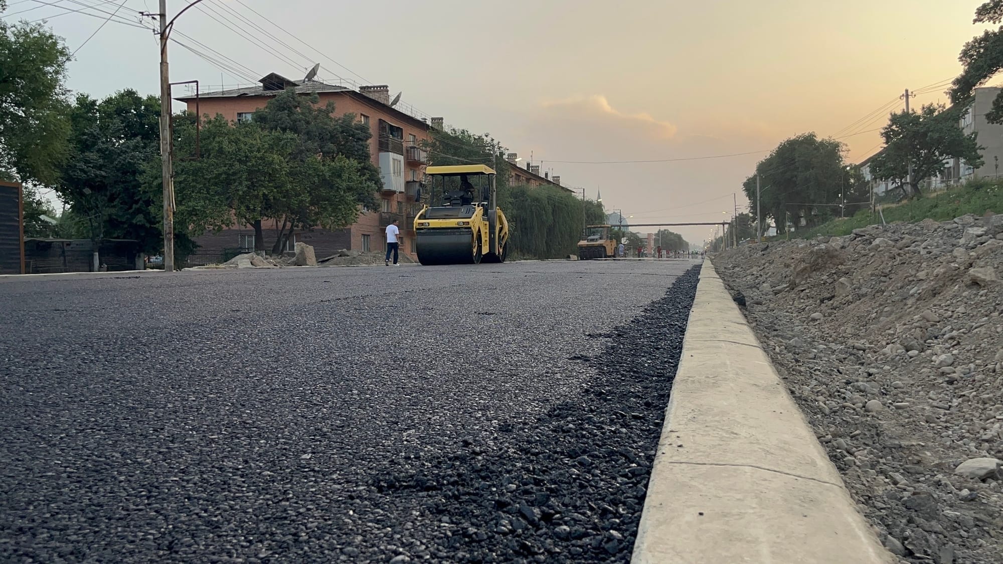 В Оше реконструируют улицу Кокум-Бий — уложен первый слой асфальта на 2.2 км