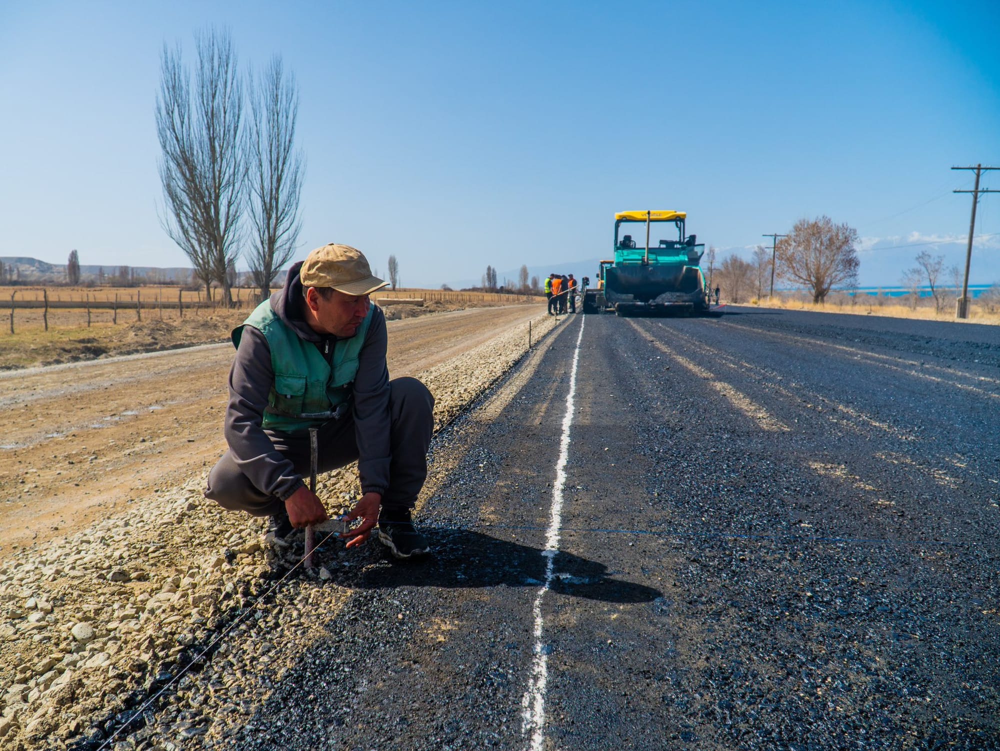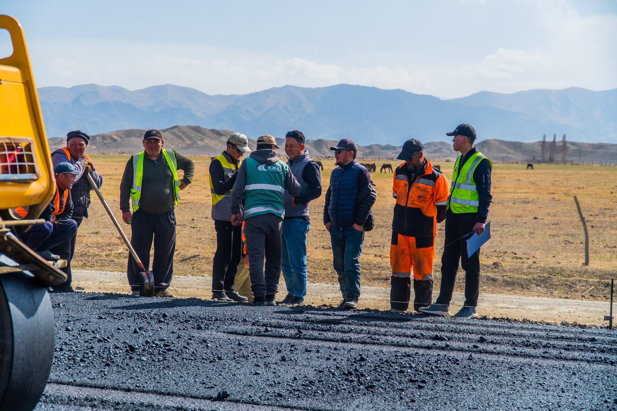 По данным ассоциации, на участке с 0 по 71 км подрядчик «Кыргыз Жол Курулуш» укладывает первый и второй слои дорожного покрытия. На участке с 96 по 126 км первый слой укладывает компания «Арек Строй».