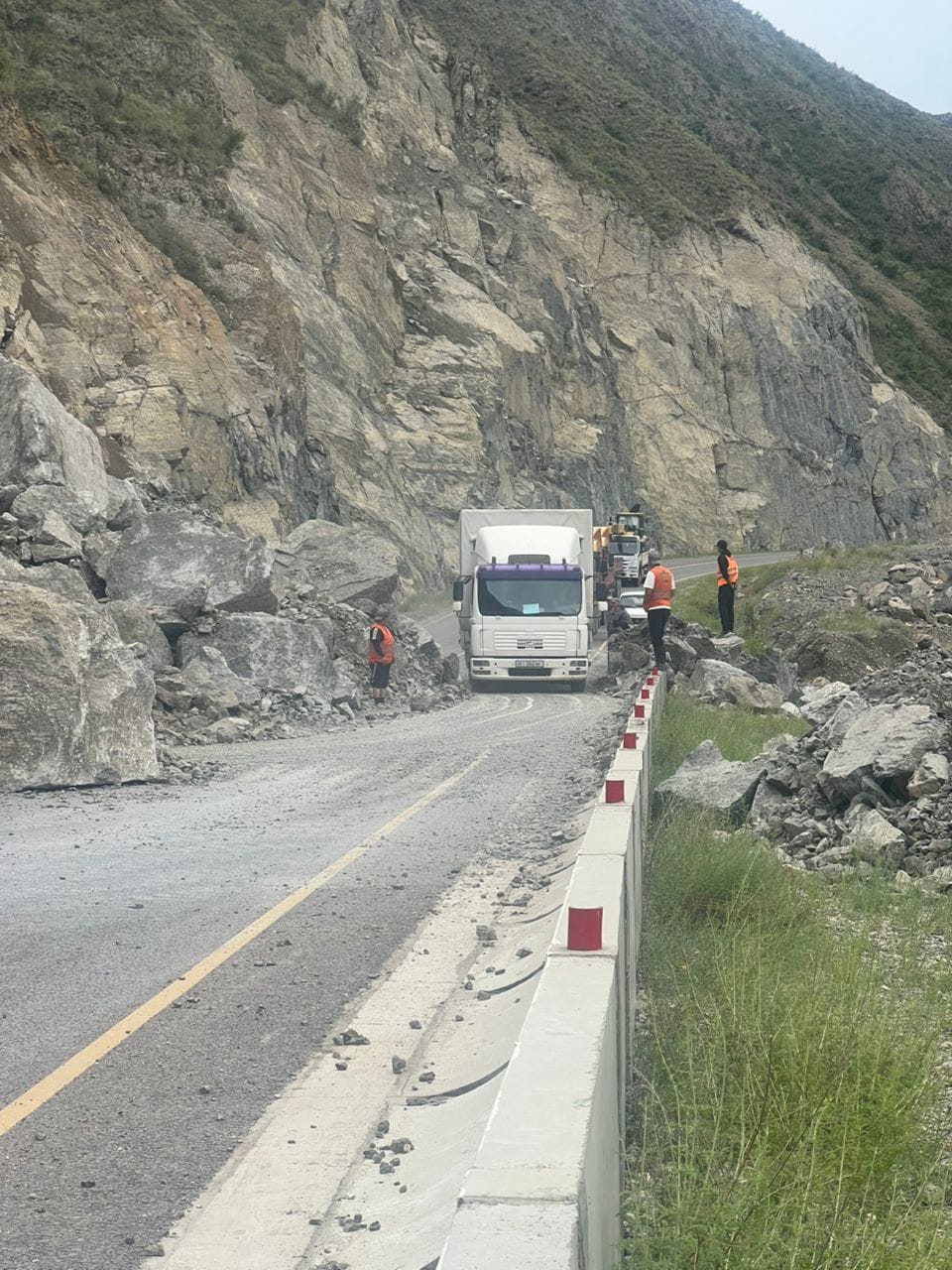 Очистка и расширение дороги продолжаются. Дополнительно ведутся работы на участке 243-296 км, где также наблюдаются камнепады. Работы проводит № 18 дорожно-эксплуатационное предприятие.