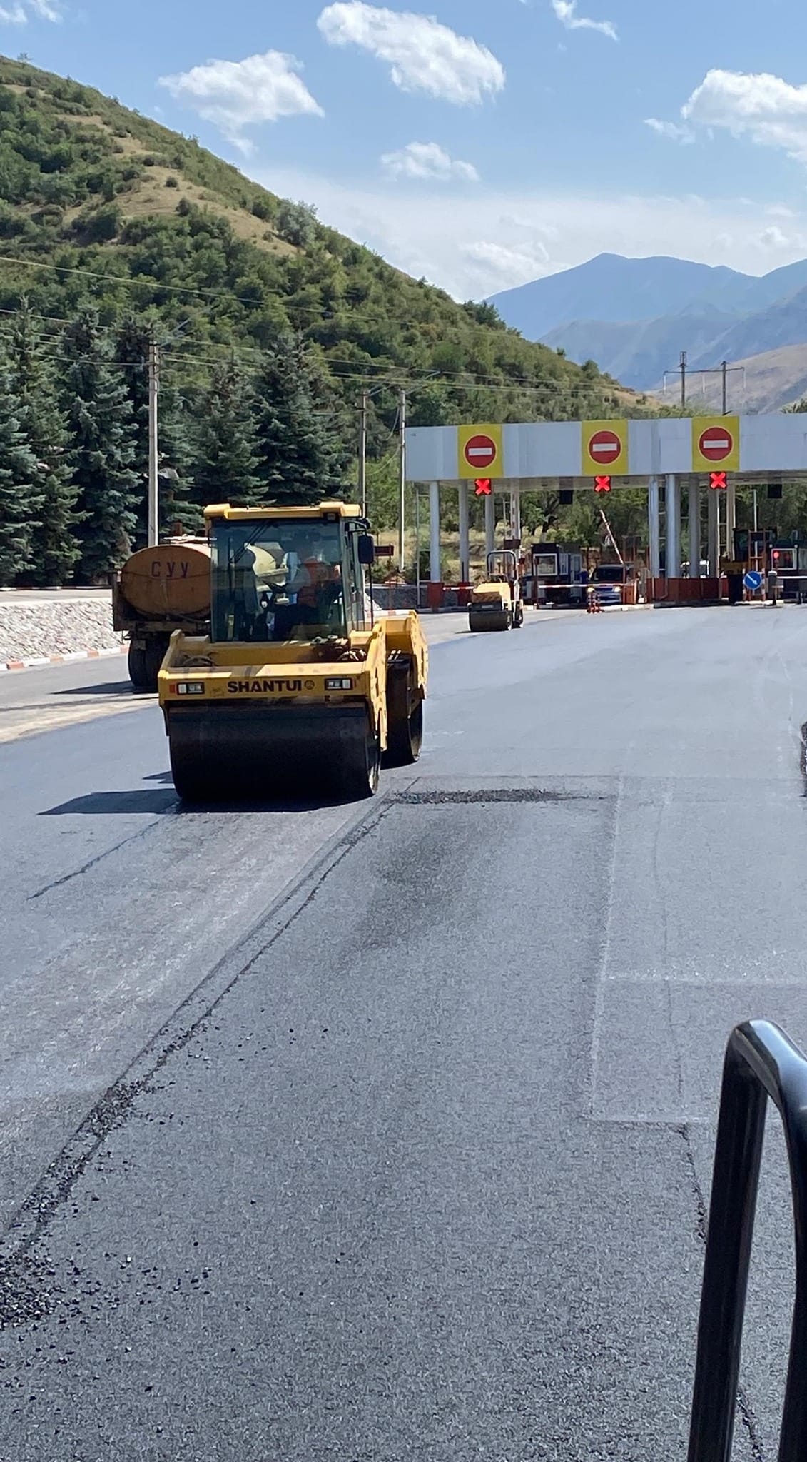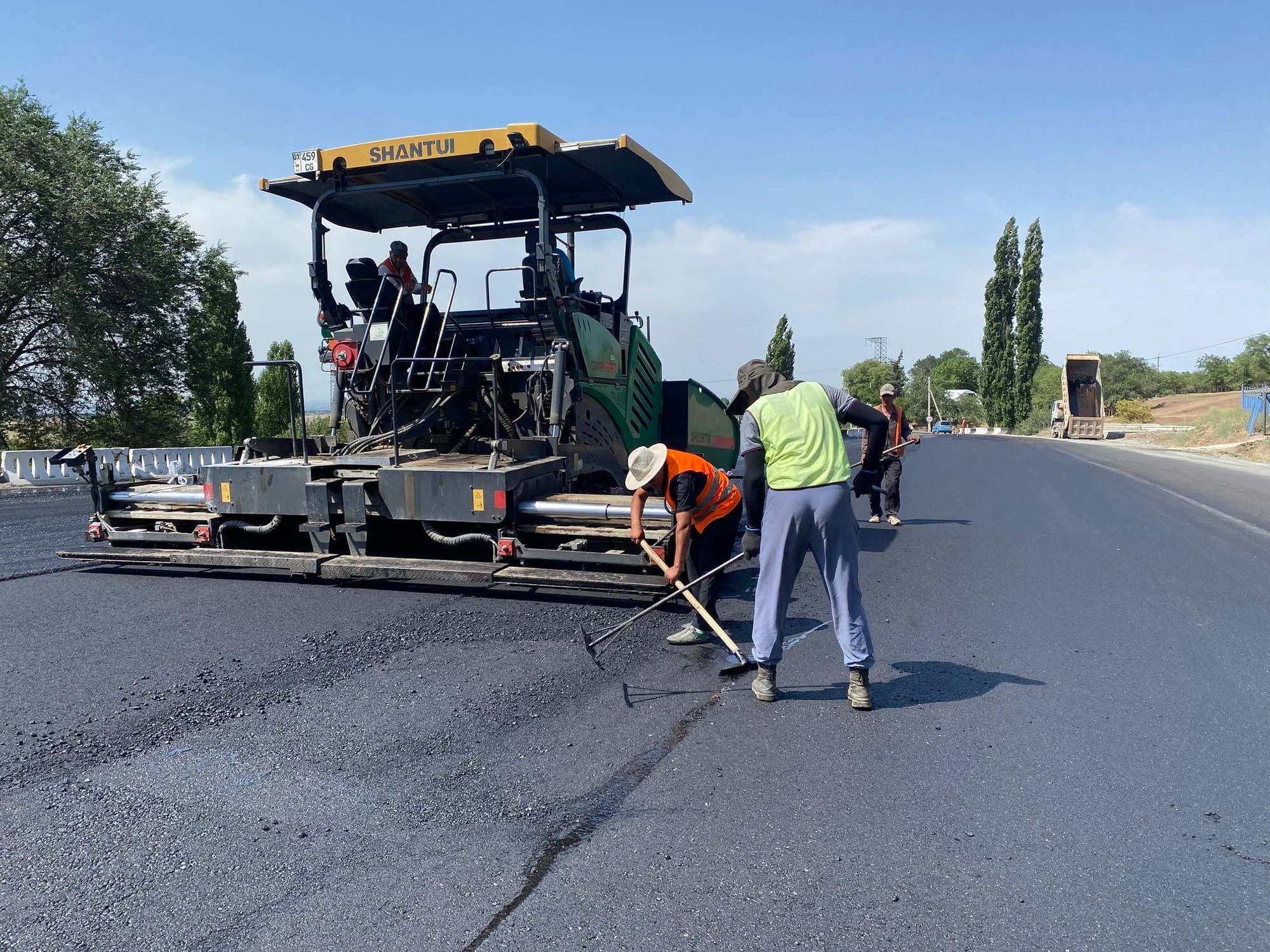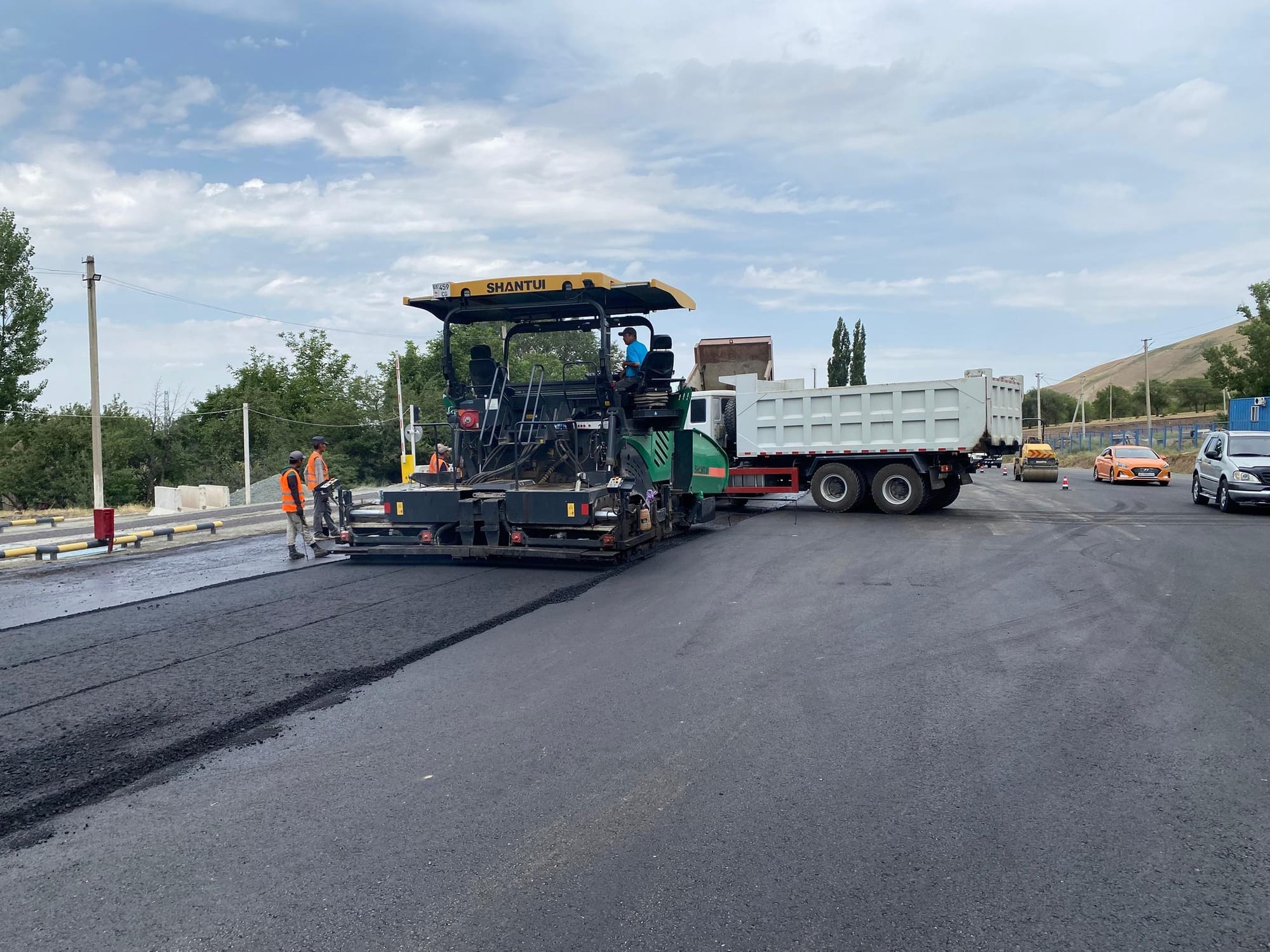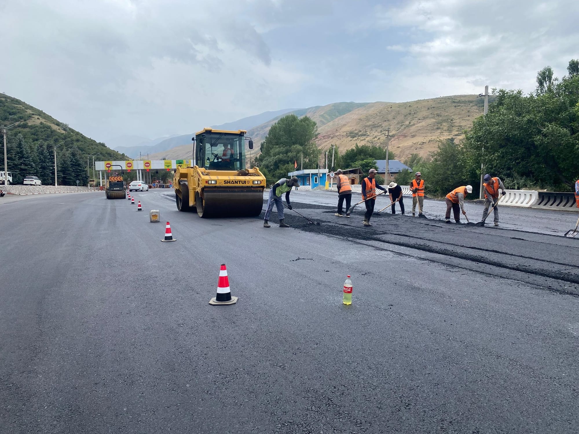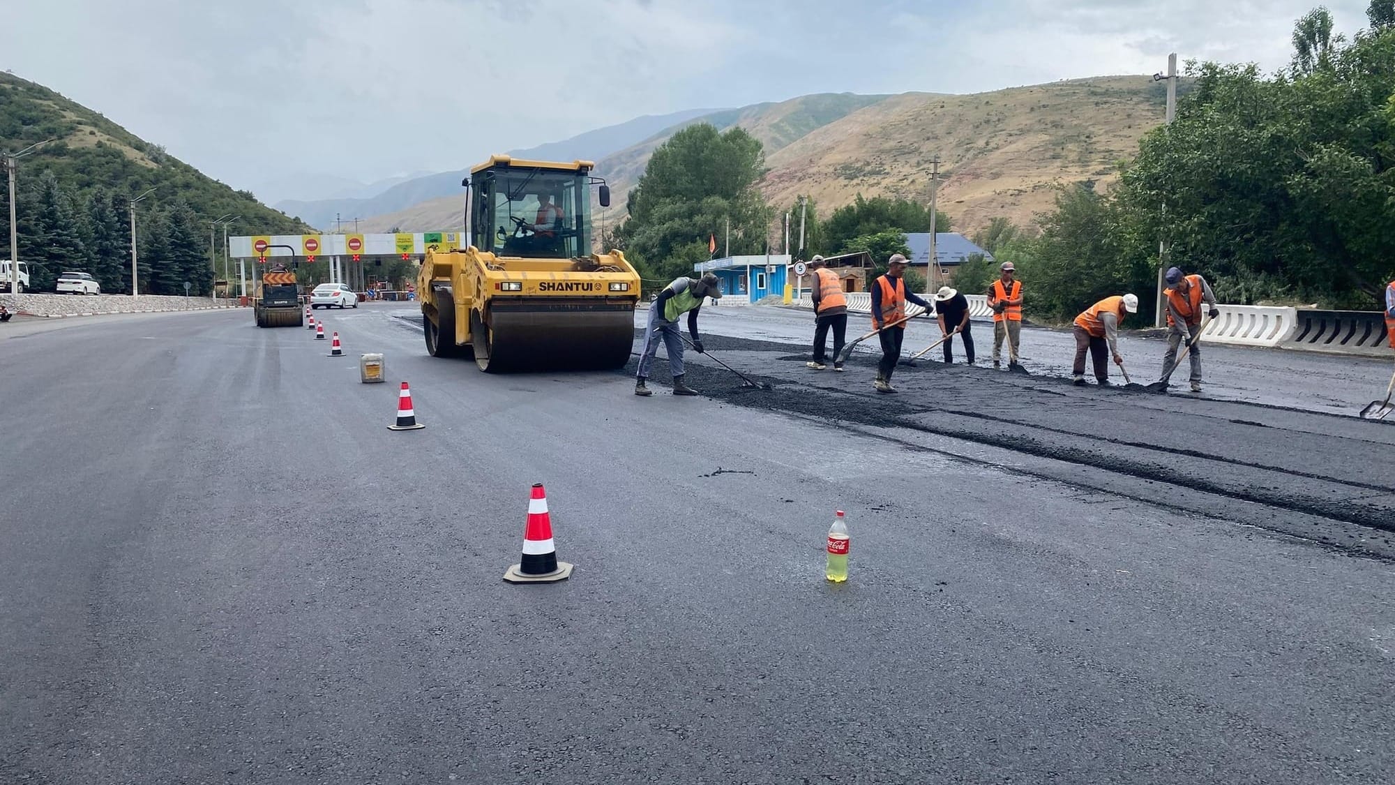 На 81-м километре автодороги Бишкек – Ош продолжаются работы по асфальтированию территории и въездных-выездных путей контрольно-пропускного пункта «Сосновка». Об этом сообщили в Минтрансе.