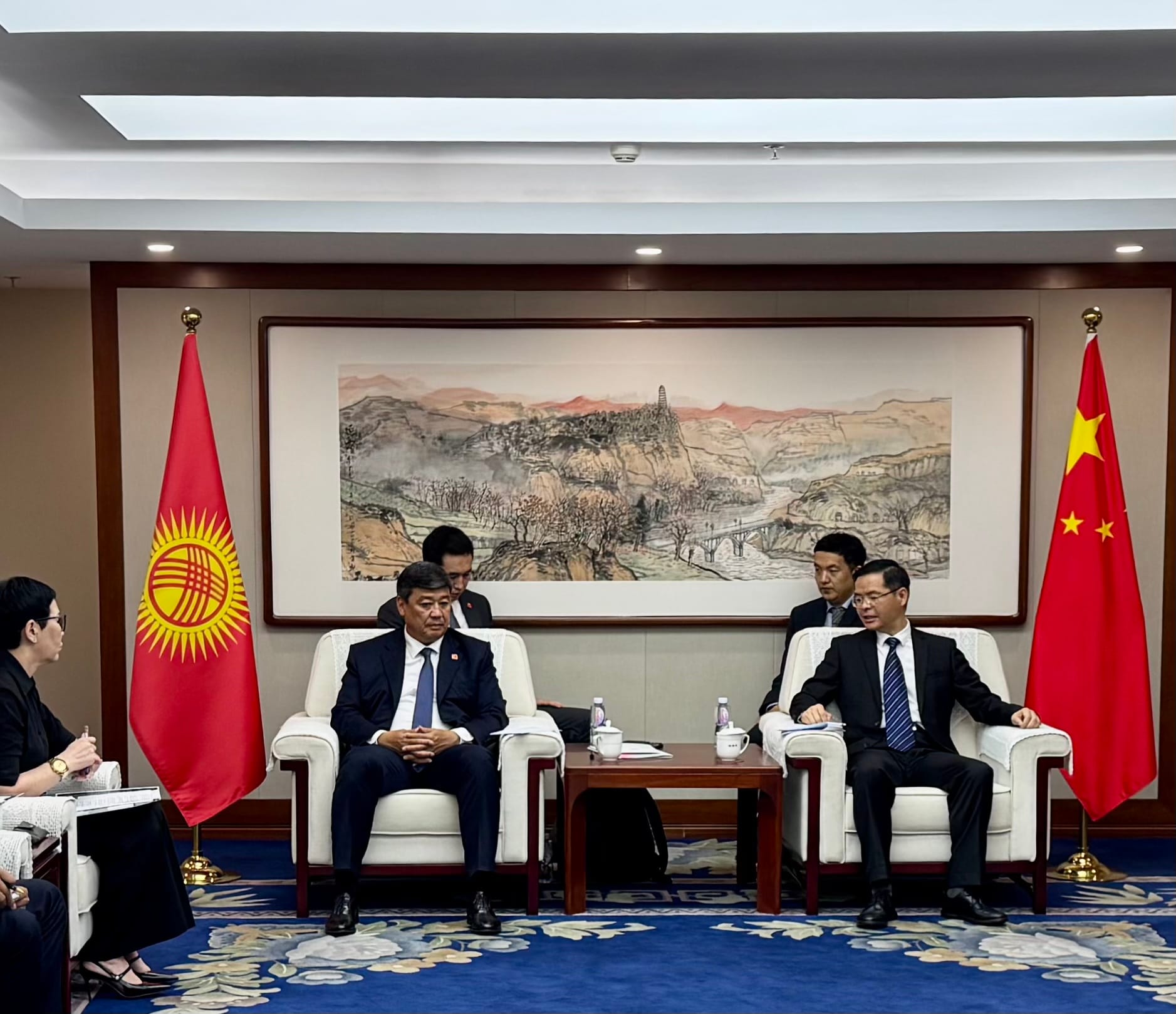 В рамках визита в Китай состоялась встреча замглавы кабмина Бакыта Торобаева с заместителем председателя Государственного комитета по развитию и реформам Китая Чжоу Хайбином. Об этом сообщили в правительстве.