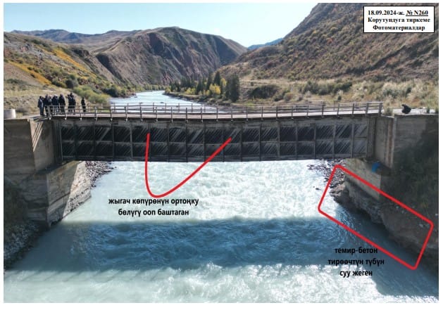 В Нарынском районе обрушился деревянный мост, соединяющий села Эки-Нарын и Таш-Башат, в результате чего грузовой автомобиль марки «КамАЗ» упал в реку Нарын. Об этом сообщает МЧС.