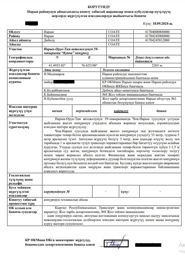 В Нарынской области грузовик сорвался в реку после обрушения аварийного моста — водитель пропал без вести