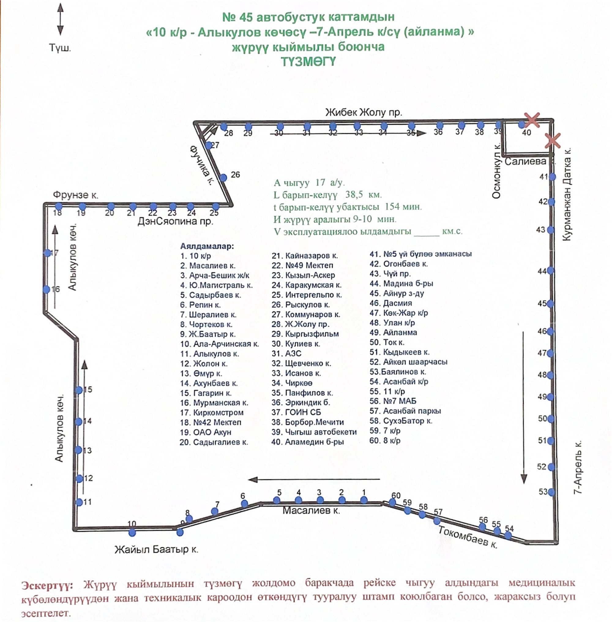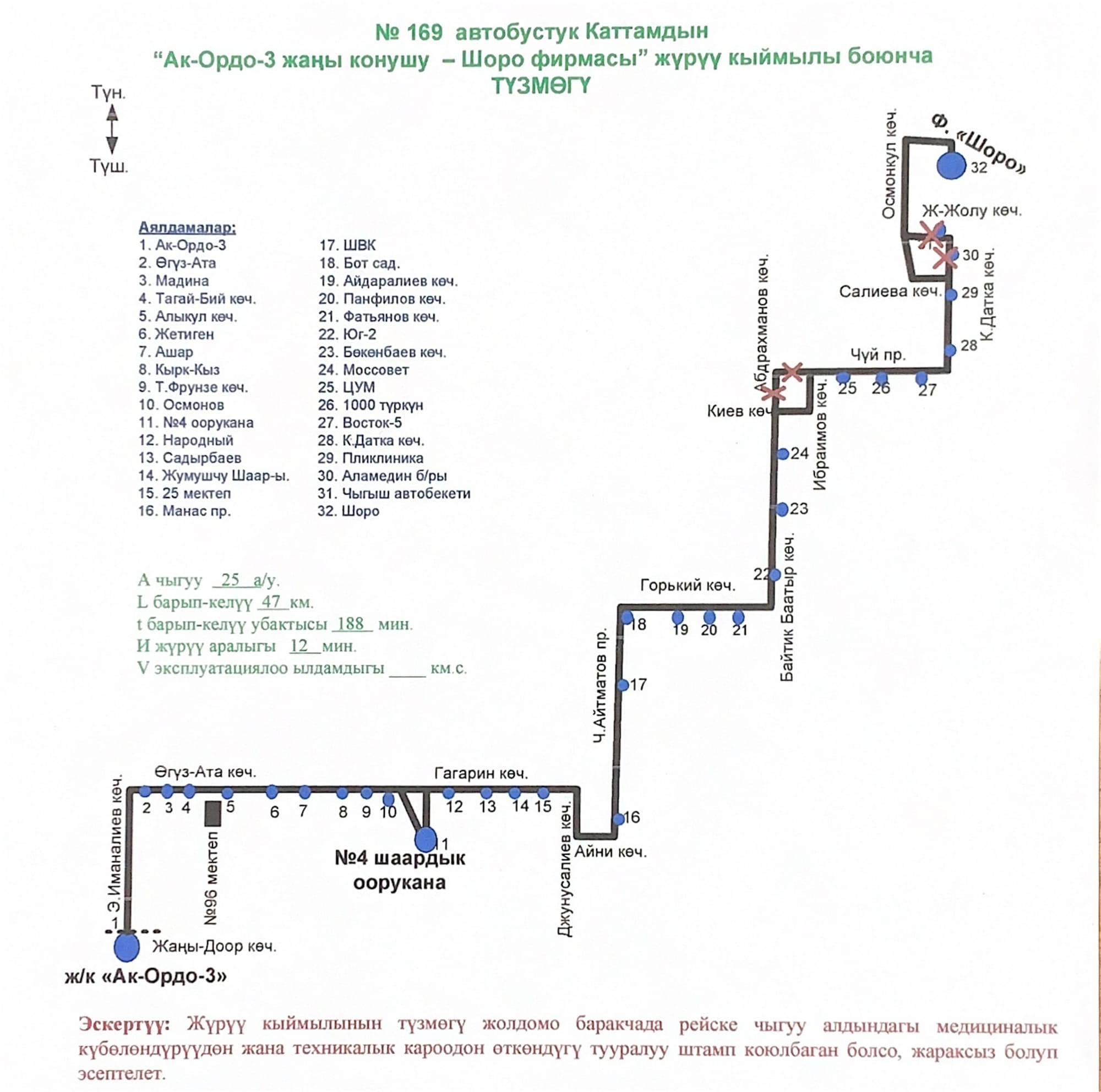 Участок дороги от улицы Осмонкула до улицы Т. Айтматова будет закрыт для движения транспорта. Работы связаны с возведением нового моста, который расширят с двух до шести полос. Его длина составит 25 м, ширина — 34.3 м, а по обеим сторонам появятся пешеходные тротуары по 3 м.
