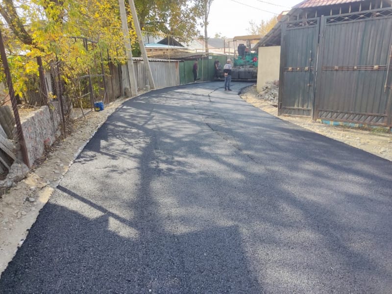 В Бишкеке укладывают новый асфальт на улице Кулиева в жилмассиве Колмо. Фото: мэрия.