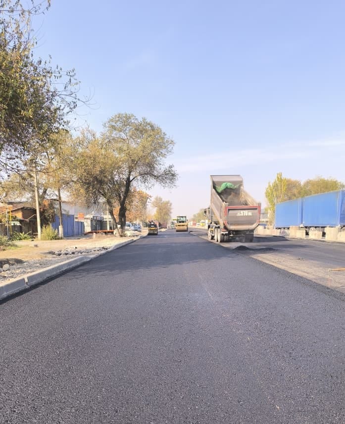 На трассе Бишкек–Кант–Токмок в Лебединовке завершается укладка первого слоя асфальта. Об этом сообщает Минтранс.