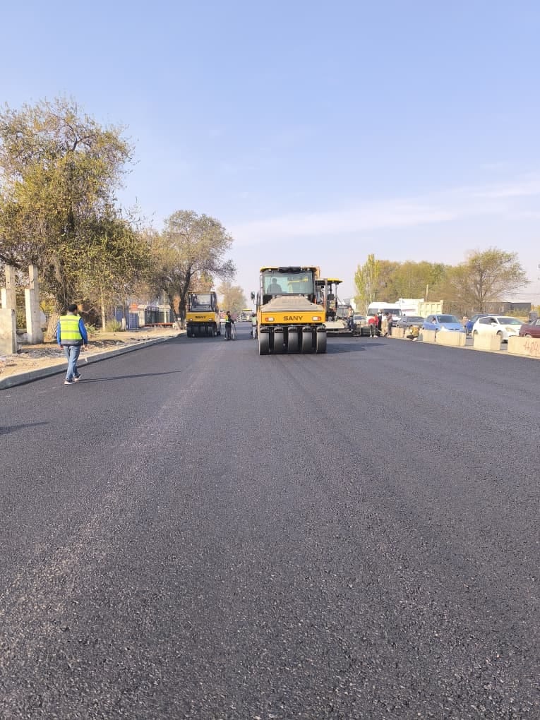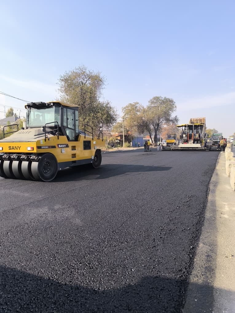 На трассе Бишкек – Кант – Токмок завершают укладку первого слоя асфальта