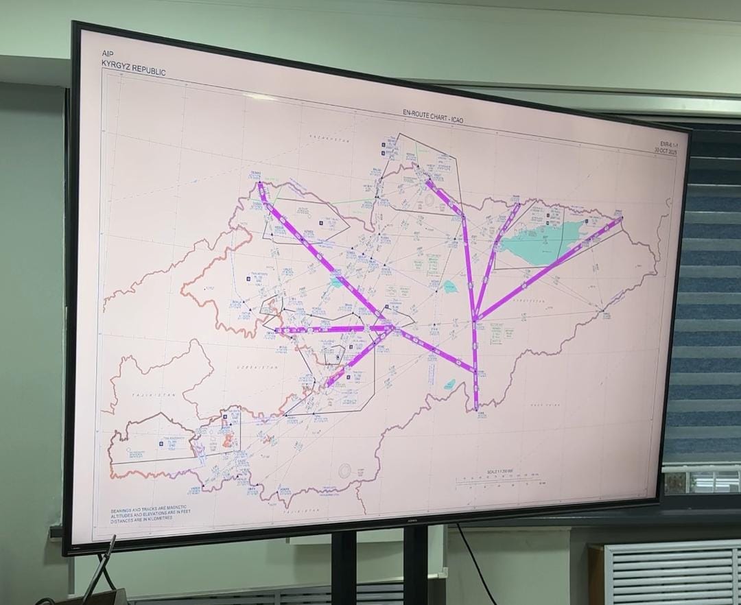 Маршрут разработало ведомство и ГП «Кыргызаэронавигация» в рамках инициативы «Воздушный шелковый путь». Ожидается, что он позволит сократить расстояние между аэропортом Кашгар и воздушными гаванями Бишкека, Оша, Ташкента и Алматы.
