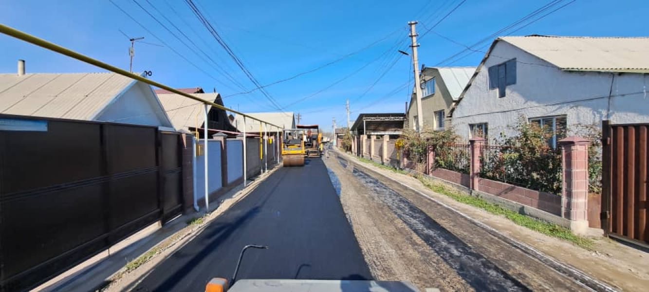 Муниципальное предприятие «Бишкекасфальтсервис» завершило укладку асфальта на участке улицы Кедейкан — от улицы Месароша до Набережной.