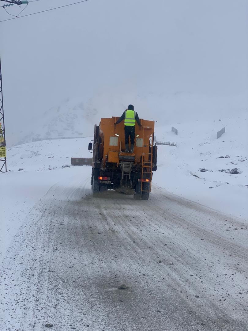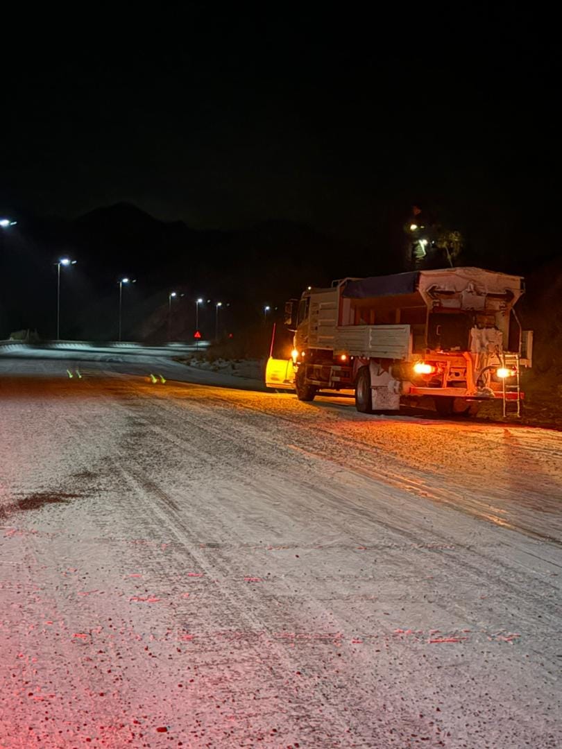 ГП «Кыргызавтожол-Түштүк» и «Кыргызавтожол-Түндүк» продолжают посыпку дорог смесью песка и соли.
