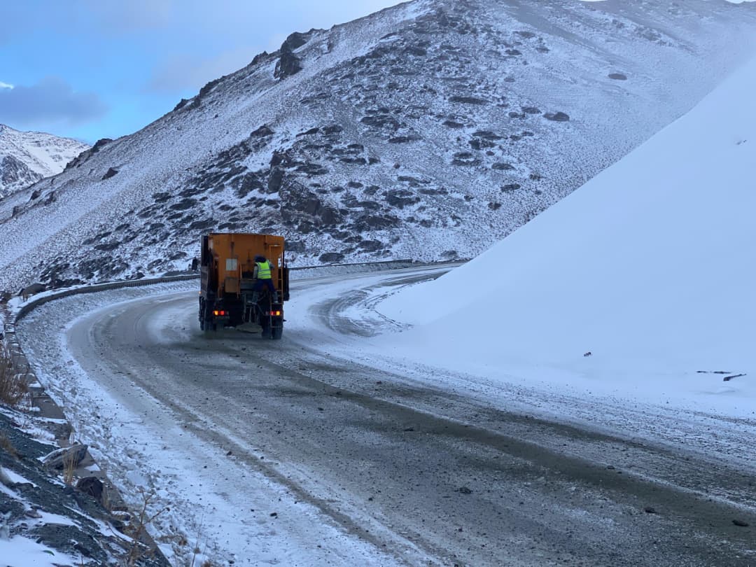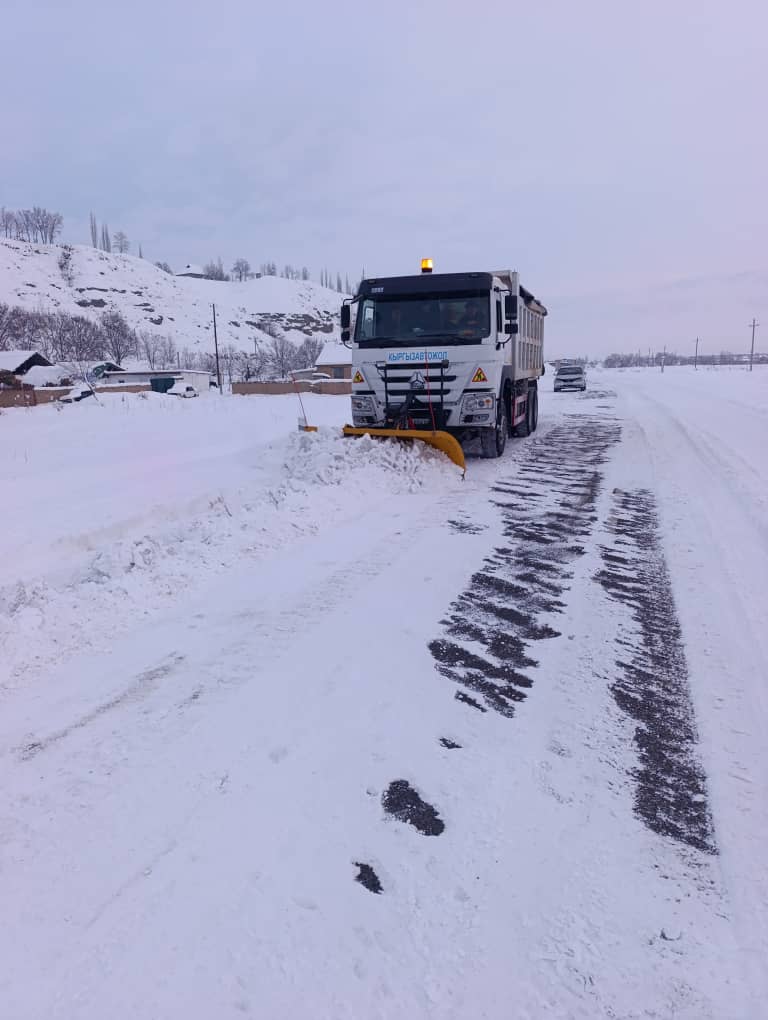 На перевалах Тоо-Ашуу и Ала-Бел на трассе Бишкек—Ош сохраняются ранее введенные временные ограничения для большегрузных автомобилей, так как идет снег и работы продолжают.