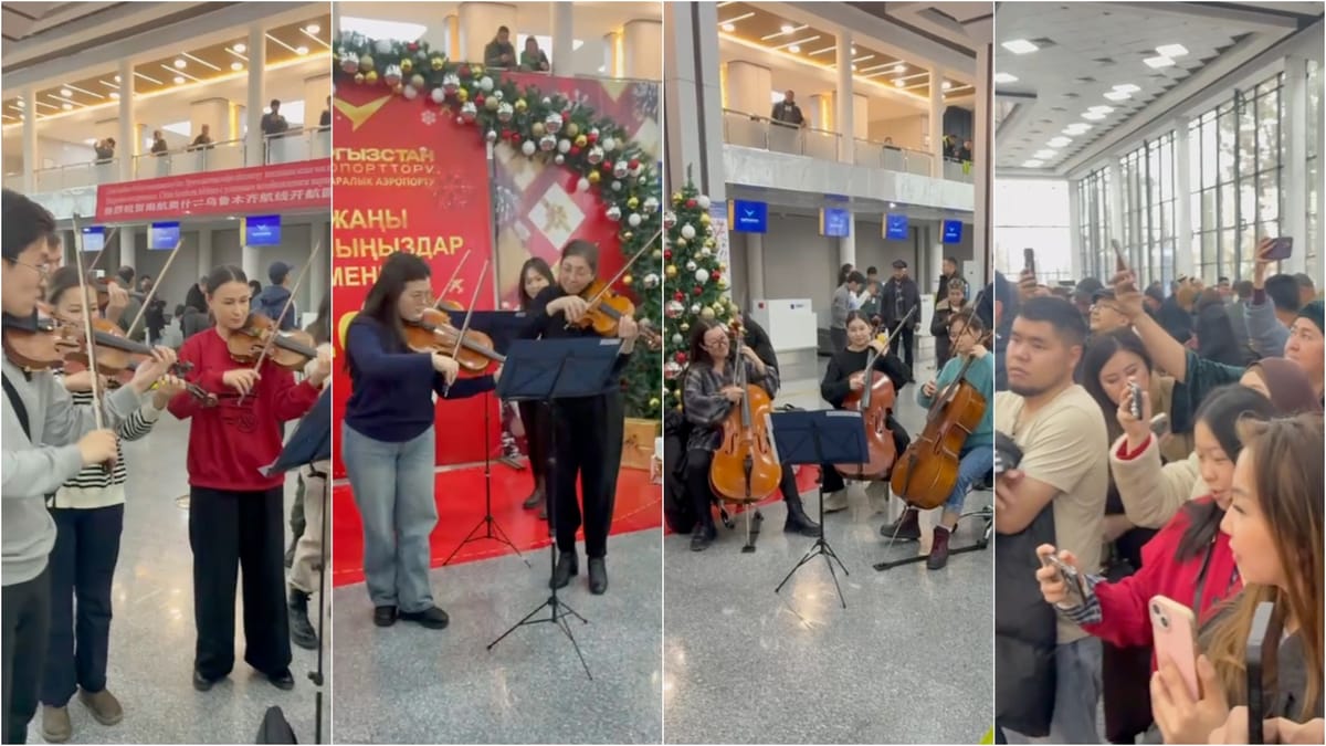 Чуйский камерный оркестр дал новогодний концерт в зале ожидания аэропорта Оша на фоне отмен и переносов рейсов в Оше и Бишкеке, сообщила администрация оркестра, опубликовав видео выступления. По словам артистов, из-за задержек вылетов коллектив вместе с пассажирами оказался в аэропорту и решил поддержать людей, которые вынужденно ожидали рейсы. «Задержка всех
