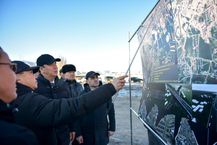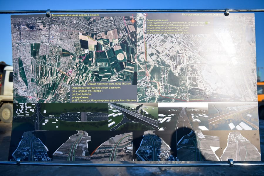 Мэр Бишкека Айбек Джунушалиев дал старт проекту строительства Восточной объездной автомобильной дороги протяженностью 16 км, которая должна вывести транзитный транспорт за пределы города и снизить нагрузку на центральные улицы.