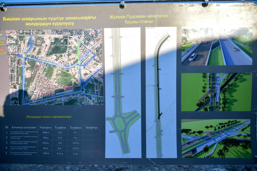 Мэр также ознакомился с проектом строительства улицы Жукеева-Пудовкина на участке от ул. Токомбаева до ул. Иманалиева. По данным мэрии, на объекте задействовано около 100 единиц специализированной строительной техники.