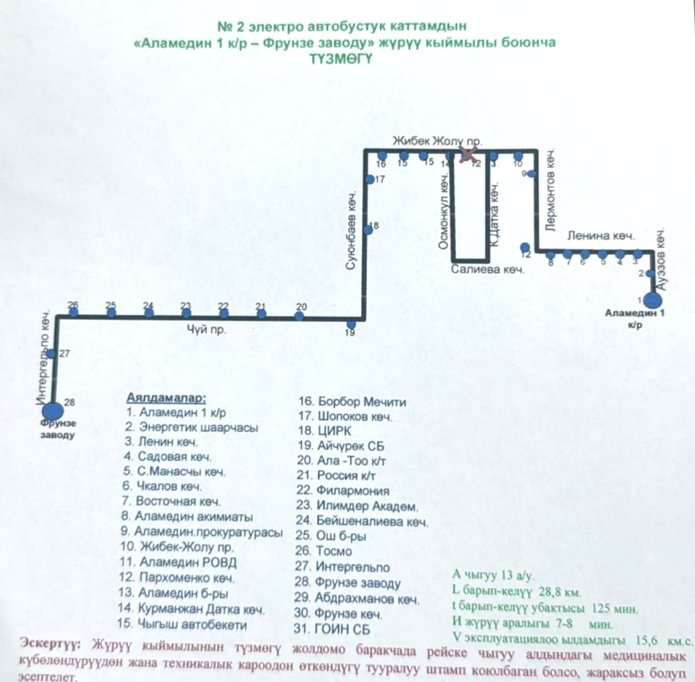 С 23 декабря электробус №2 в Бишкеке будет курсировать по новой схеме
