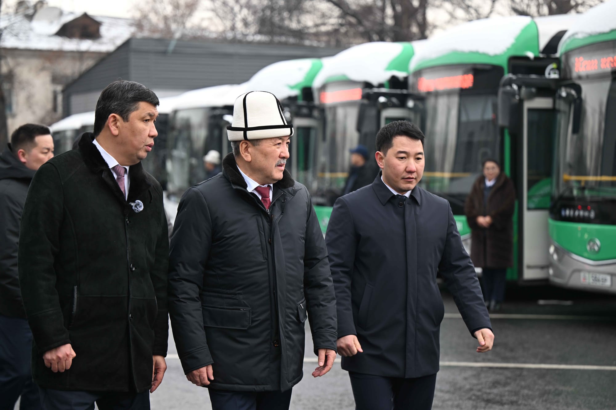 Глава кабмина Адылбек Касымалиев 12 февраля передал мэрии Бишкека ключи от 95 новых автобусов Youtong и 42 единиц спецтехники, сообщили в кабмине.