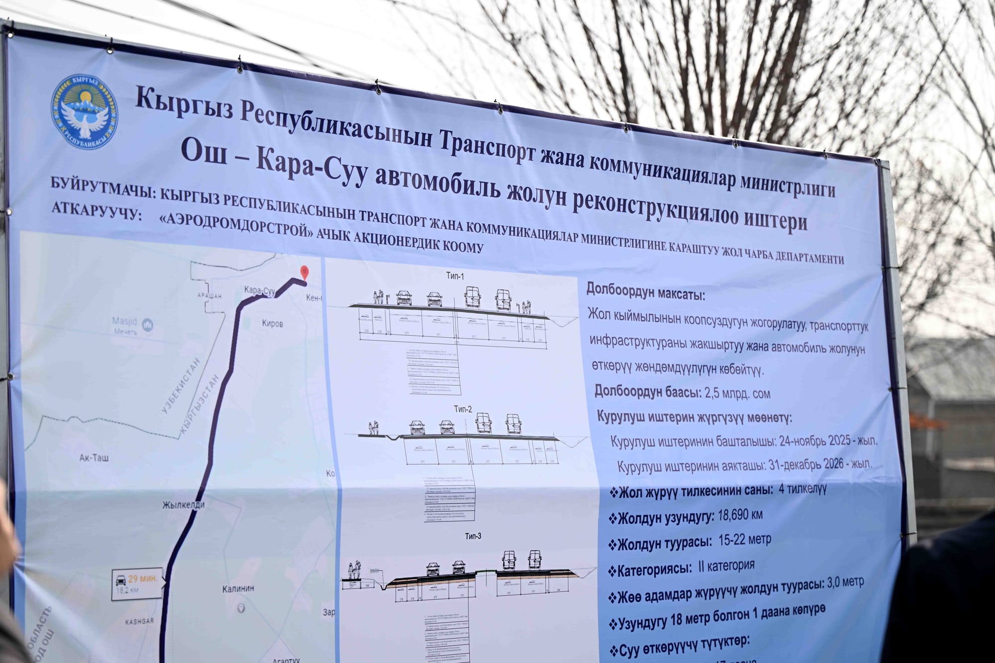 Дорогу Ош — Кара-Суу расширят до четырех полос за 2.5 млрд сомов — объект проверил Касымалиев