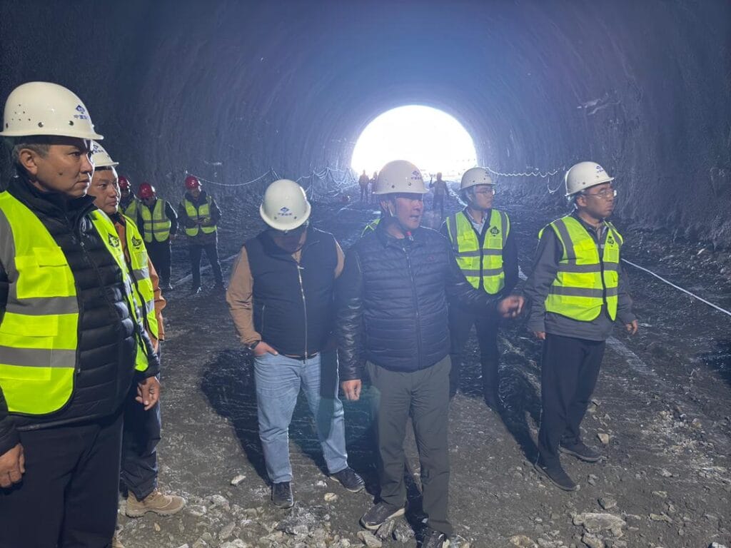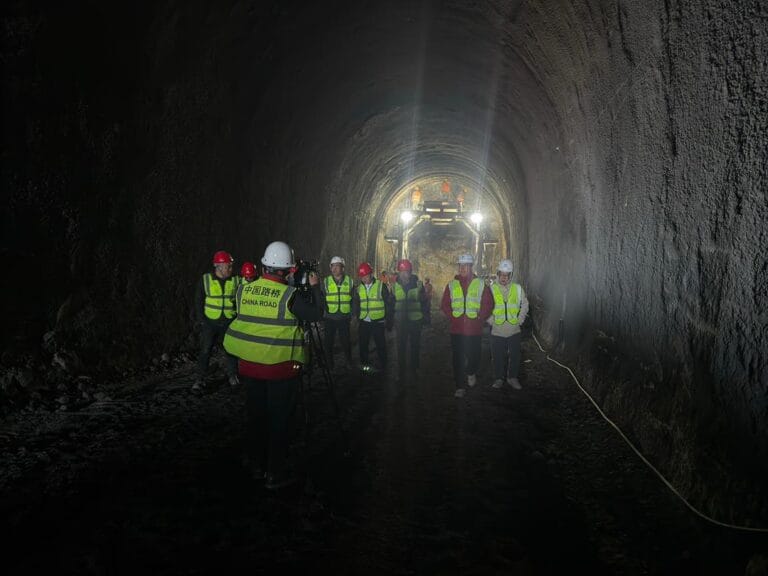 Стройка идет по графику. Уже запустили временный мост через реку Кара-Сай длиной 60 метров, начали проходку тоннелей. На площадке работают более 600 человек и свыше 200 единиц техники, парк машин в ближайшее время расширят.
