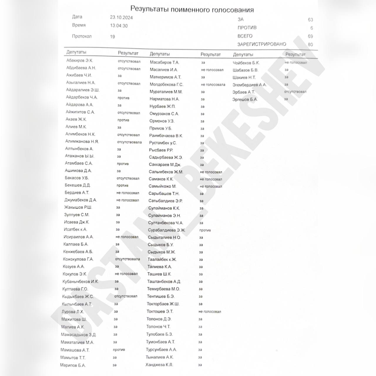 Согласно представленным данные, «за» это решение проголосовали 63 депутата, «против» — только 6 депутатов.