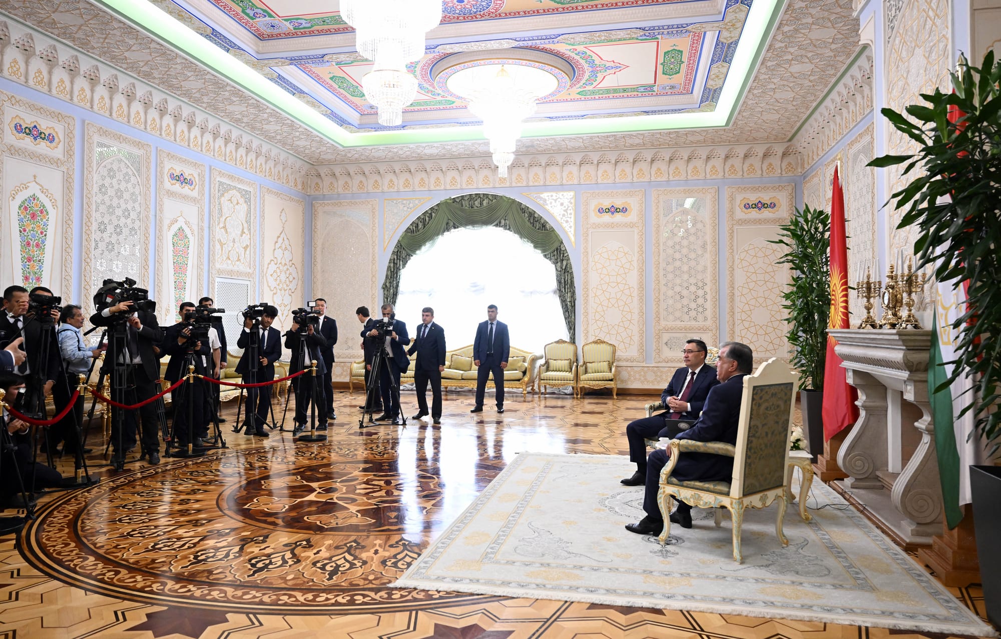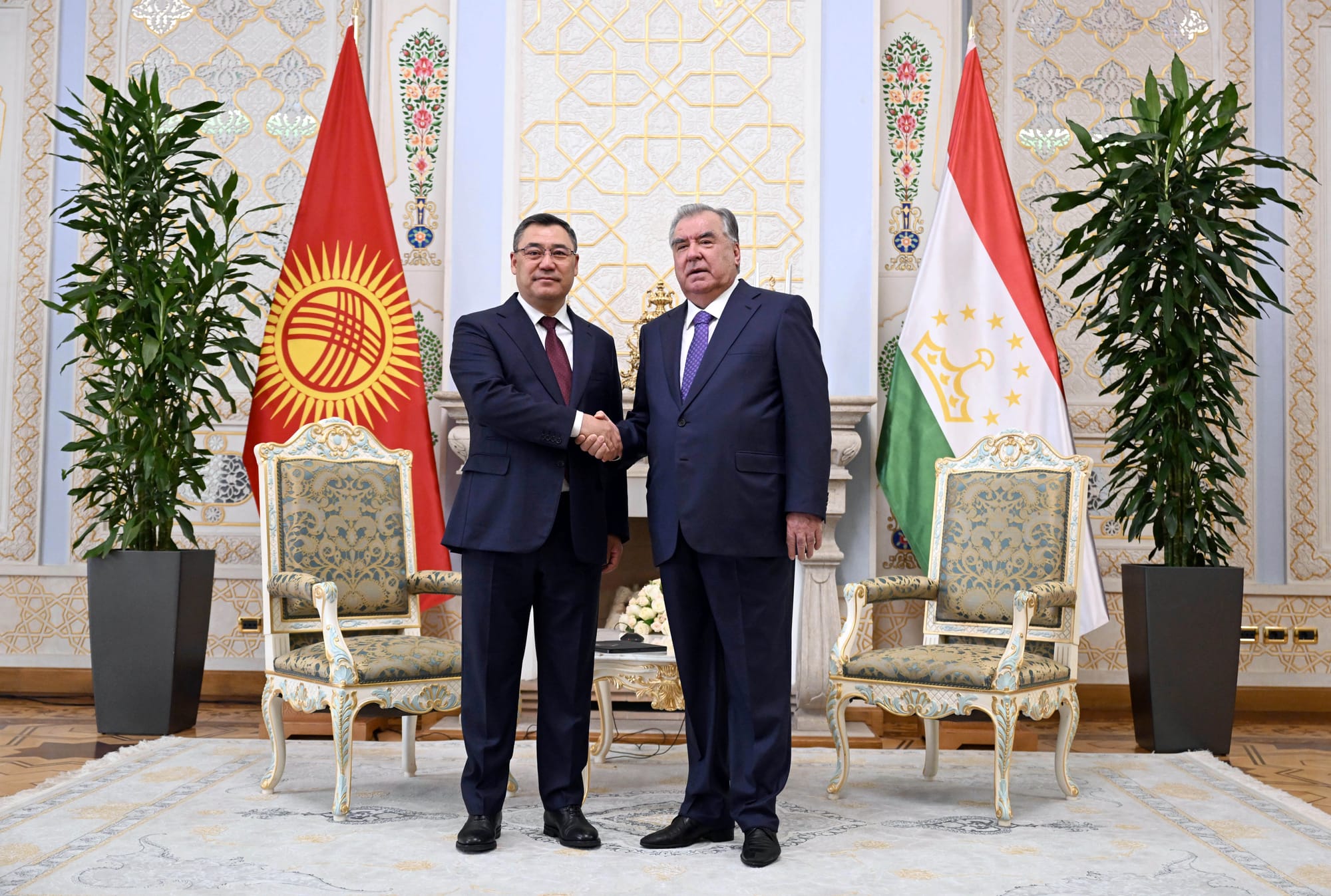 После встречи в формате тет-а-тет Жапаров и Рахмон продолжат переговоры в расширенном формате.