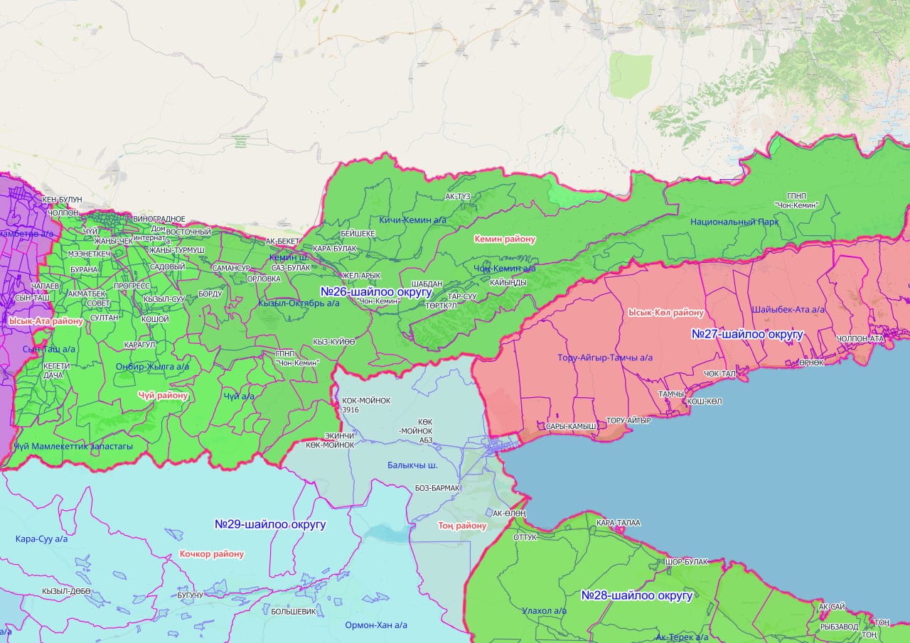 ЦИК утвердил границы избирательных округов для досрочных выборов в Жогорку Кенеш — схемы