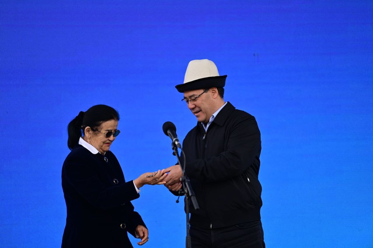 В завершение церемонии глава государства вручил ключи от новой квартиры учителю школы №1 г. Манас Сейдеке Эргешовой и осмотрел инфраструктуру комплекса.