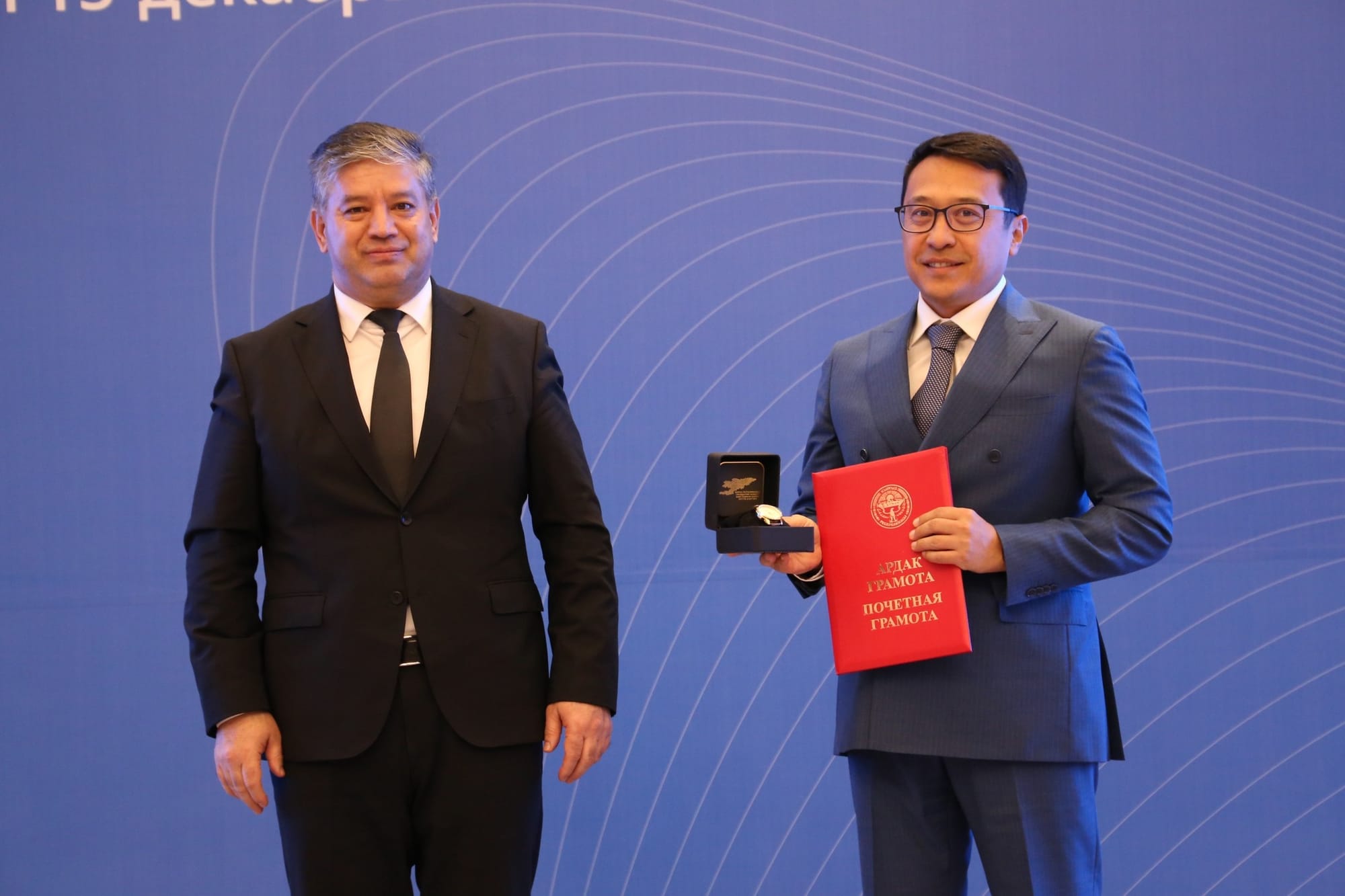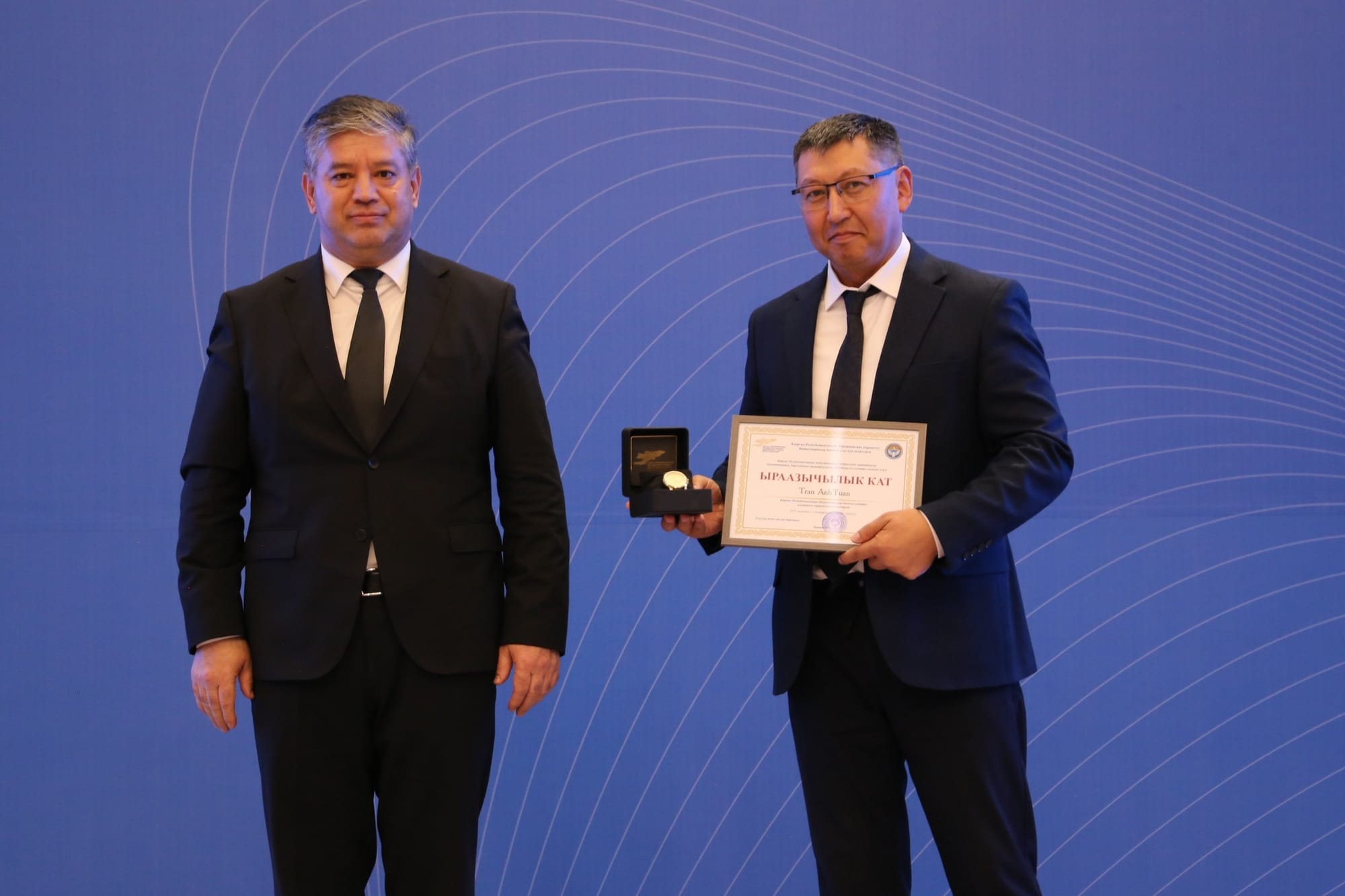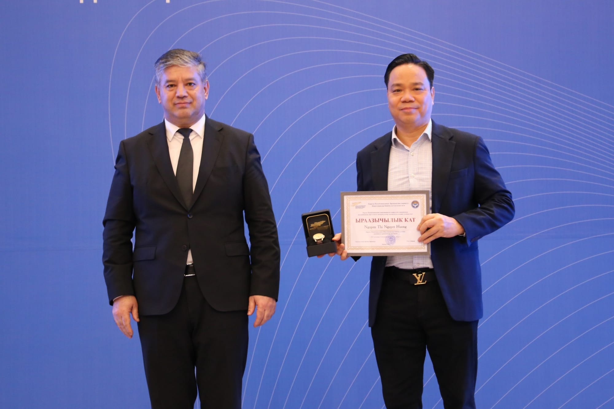 Отдельно ведомство выразило благодарность зарубежным партнерам за активное участие в проектах на территории республики. Благодарственные письма и именные часы вручили гендиректору ОсОО «Хуа Руй» Юй Гохуну, а также топ-менеджменту вьетнамской корпорации Rox Group – председателю совета директоров Нгуен Тхи Нгуиет Хионг и главе консультативного совета Чан Ань Туану.