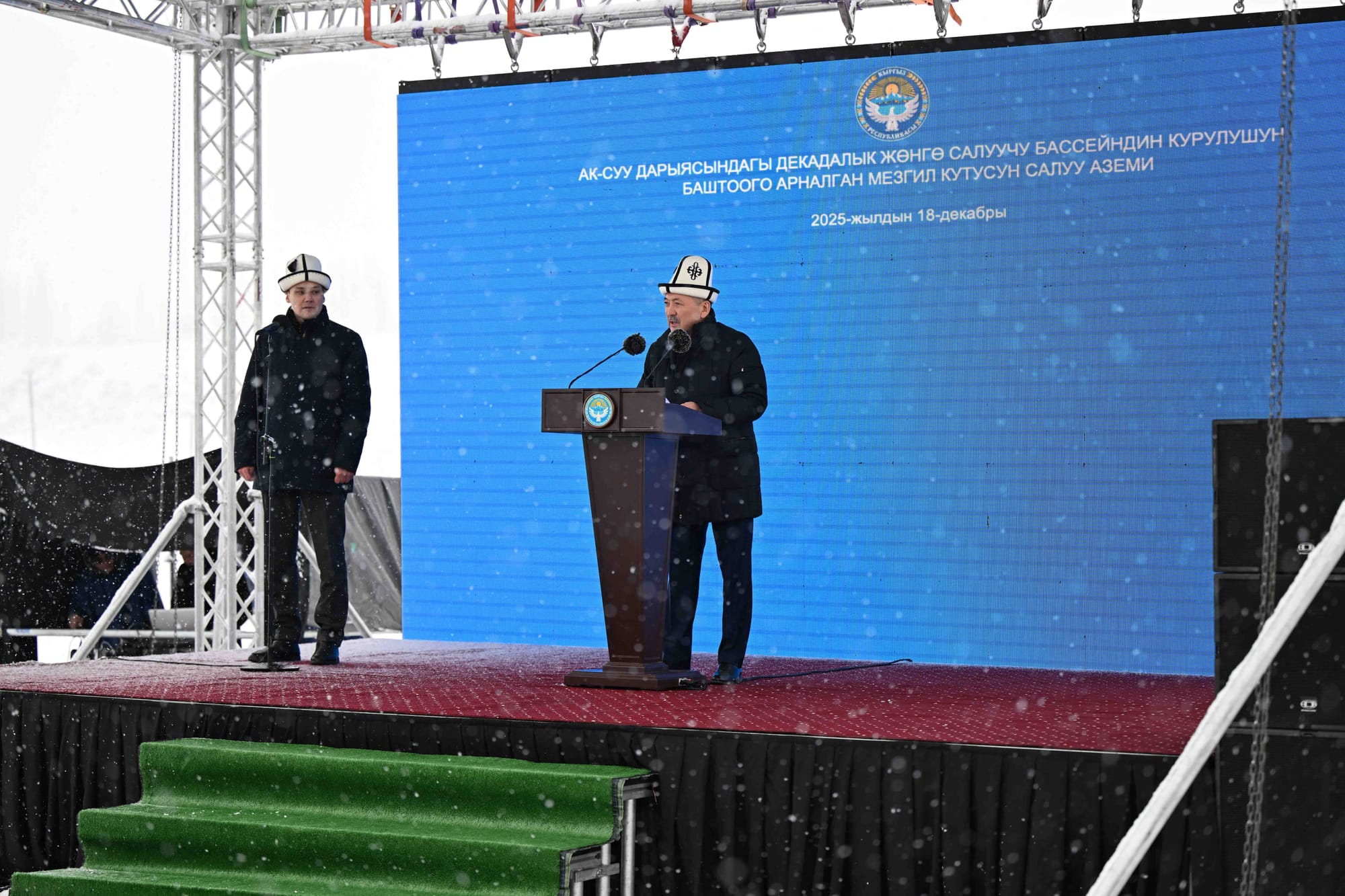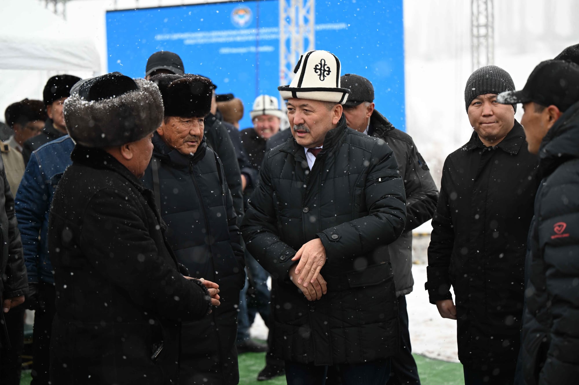 Председатель кабинета министров КР Адылбек Касымалиев 18 декабря принял участие в церемонии закладки капсулы под строительство бассейна декадного регулирования (БДР) на реке Ак-Суу в Московском районе Чуйской области.