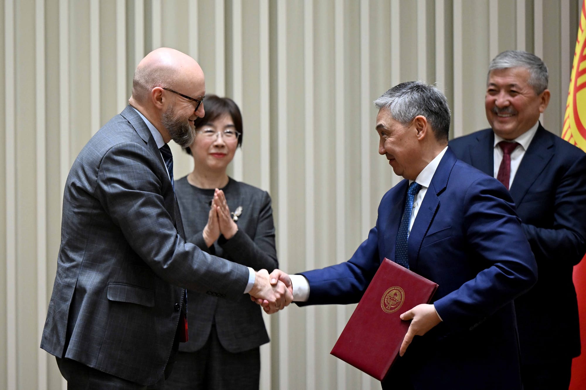 Глава кабмина КР Адылбек Касымалиев и президент Азиатского банка инфраструктурных инвестиций (AIIB) Цзоу Цзяи 12 февраля 2026 года подписали соглашение о развитии устойчивого рынка финансирования для малого и среднего бизнеса в Кыргызстане.