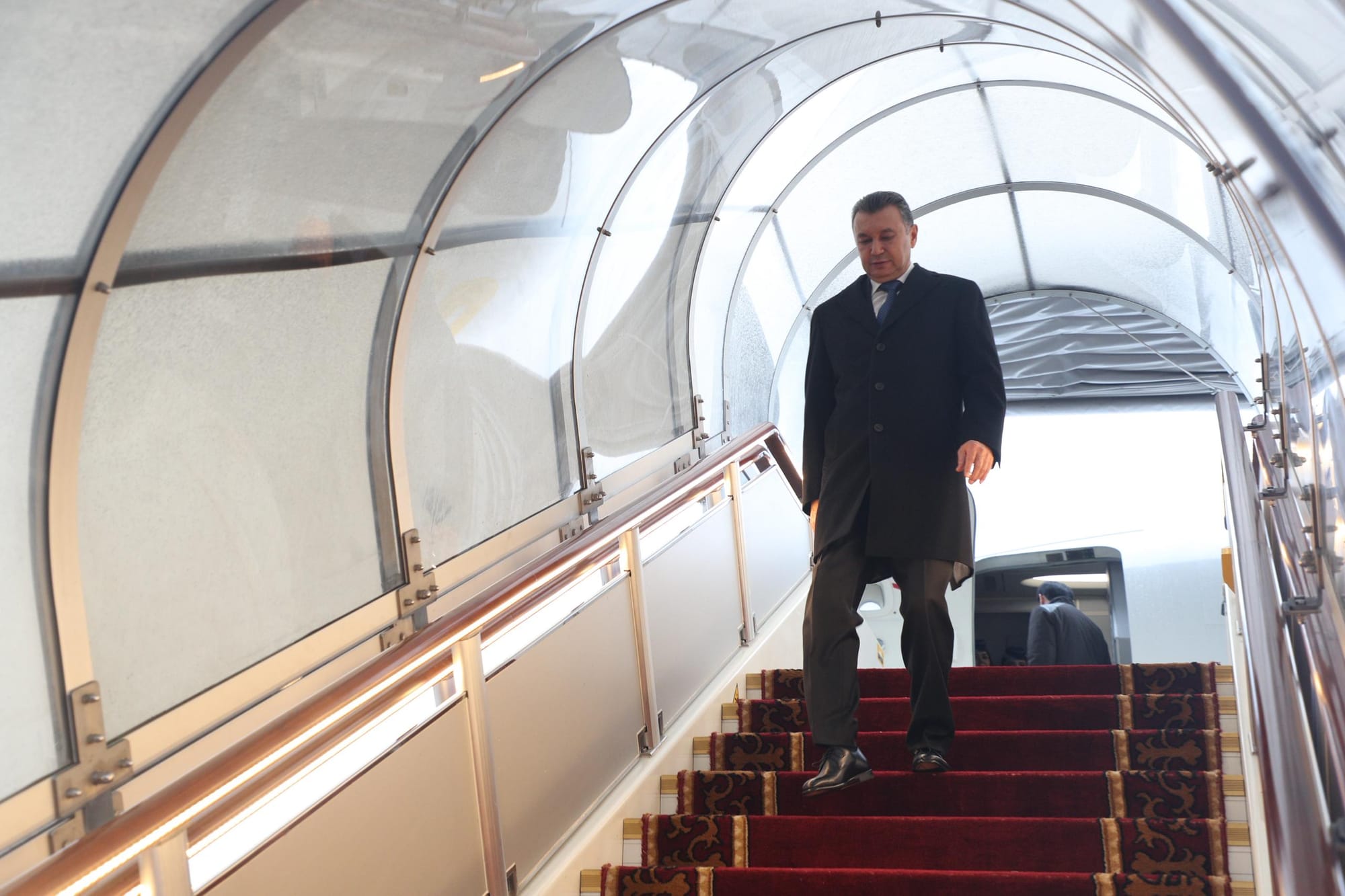 В международном аэропорту «Манас» его встретил зампред кабмина — министр водных ресурсов, сельского хозяйства и перерабатывающей промышленности Бакыт Торобаев.